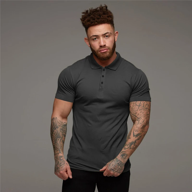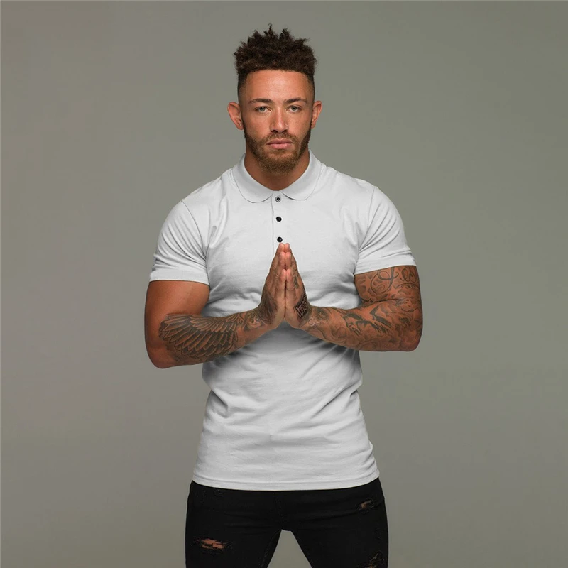 Рубашка-поло мужская из дышащего хлопка, брендовая Повседневная модная деловая короткая, для тренажерного зала и фитнеса