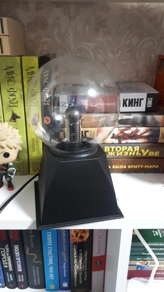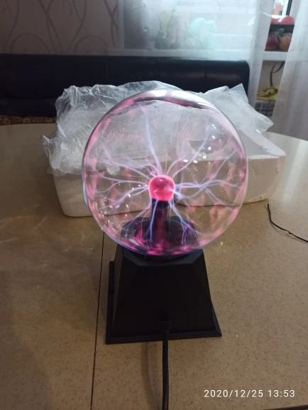 Отличный подарок для кого-нибудь или для самого себя! Покупал размер 147мм. Это очень большой шар и очень красиво работает. У некоторых продавцов есть вариант еще больше, так вот - не советую брать больше для комнаты. 8 дюймовый шар можно ставить где-нибудь в большом холле чтобы его издали было хорошо видно. Для квартиры это избыточный размер. При включении сразу появляются разряды, их много, вид потрясающий! Из минусов - слегка слышен звук работы схемы (тихий свист, но ночью слышно). Так же появляется легкий запах озона - длительно включать в комнате с детьми или чувствительными людьми не рекомендую. Так же и спать с включенным устройством всю ночь я бы не стал. В остальном - отличная штука, особенно к новому году!