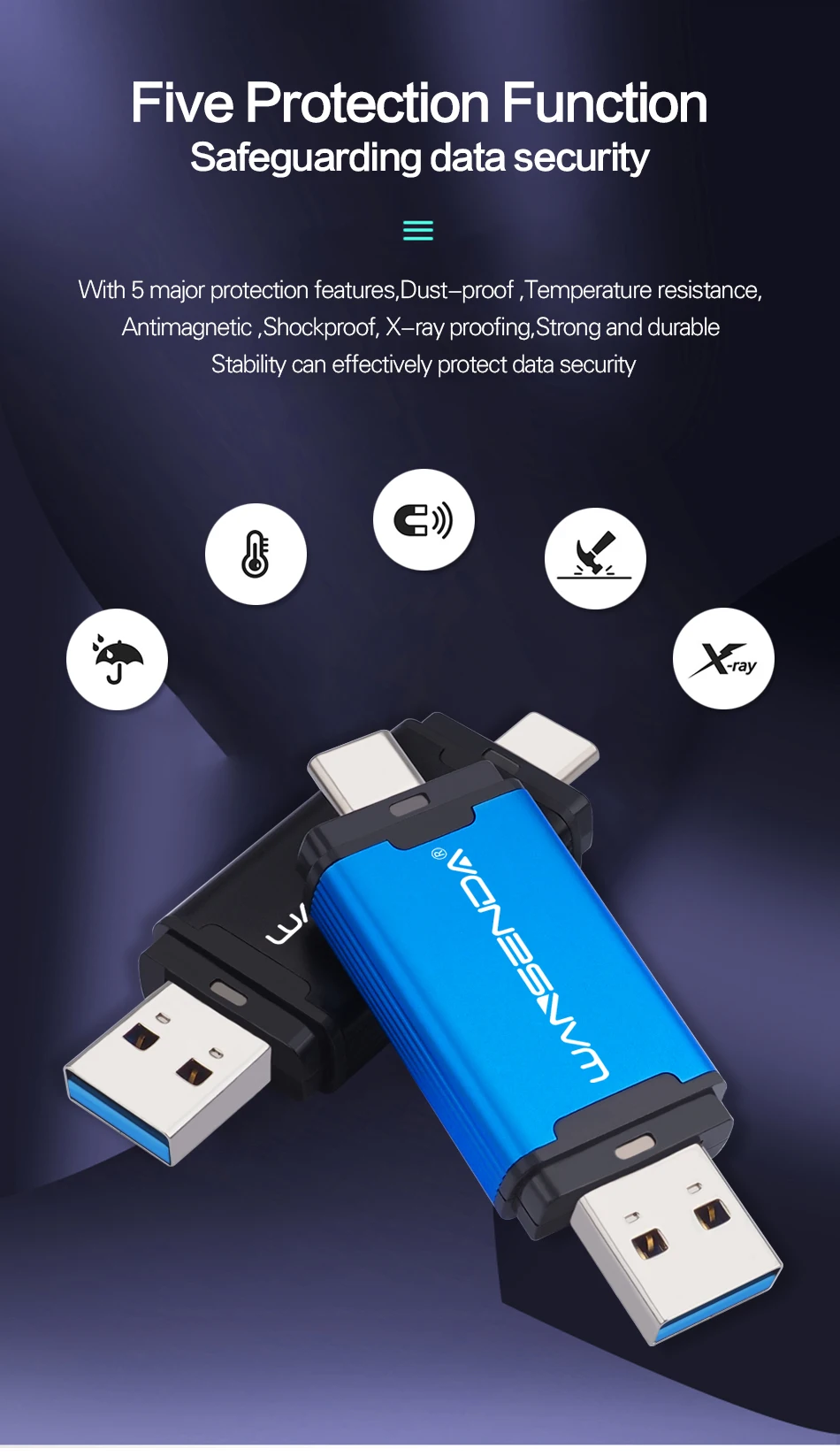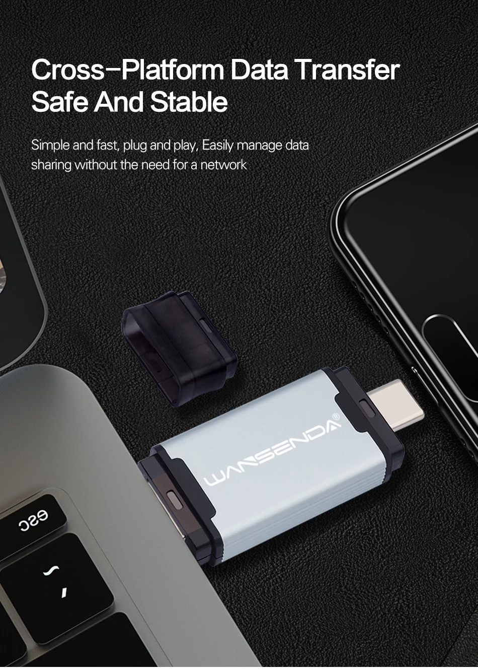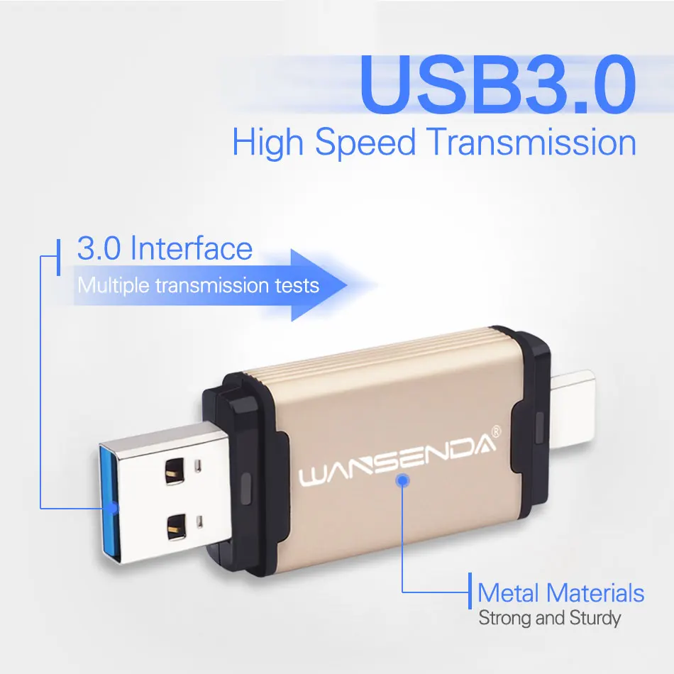 USB-флеш-накопитель WANSENDA, USB 3,0 TYPE-C, 512 ГБ, 256 ГБ, 128 ГБ, 64 ГБ, 32 ГБ, 16 ГБ, внешний накопитель для AndroidПК