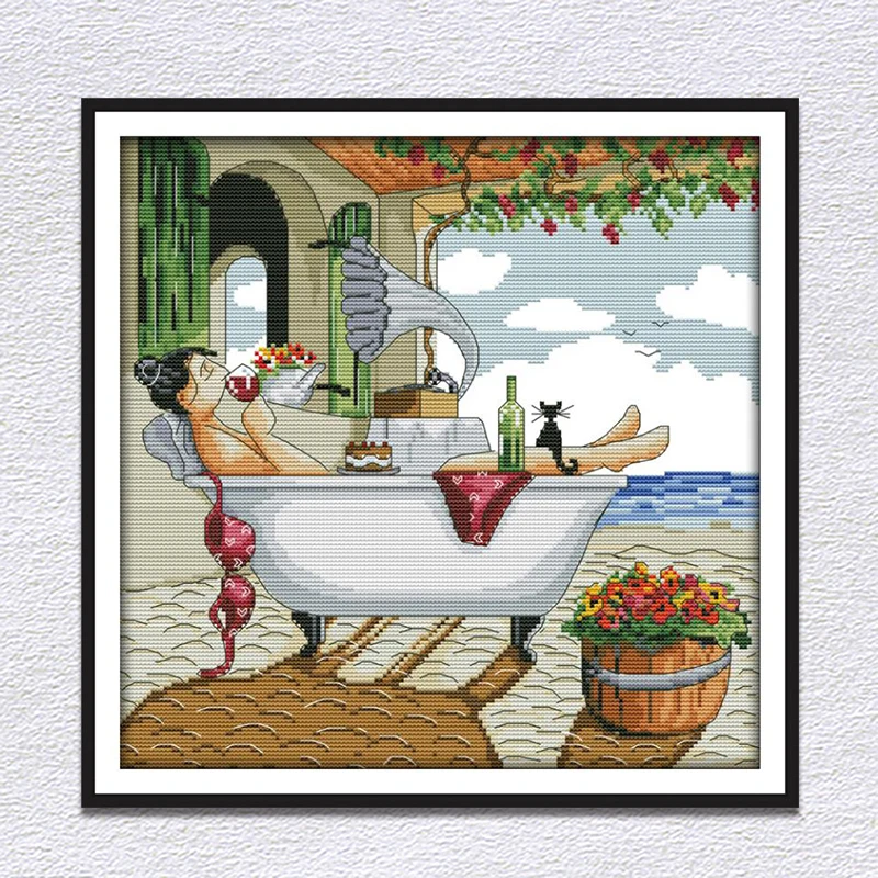 Joy Sunday Набор для вышивки крестиком, сделай сам, красивый пляжный узор, Китайская вышивка, рукоделие, подходит для учебы и гостиной