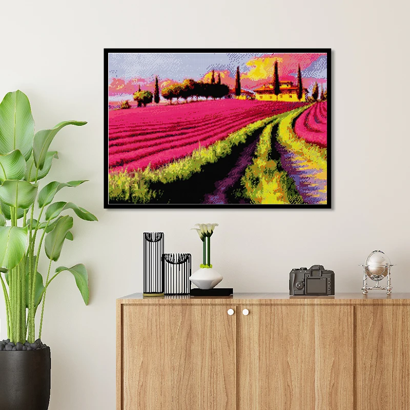 Картины пунто-де-Круз, лаванда, шампанское, вышивка крестиком, выши...