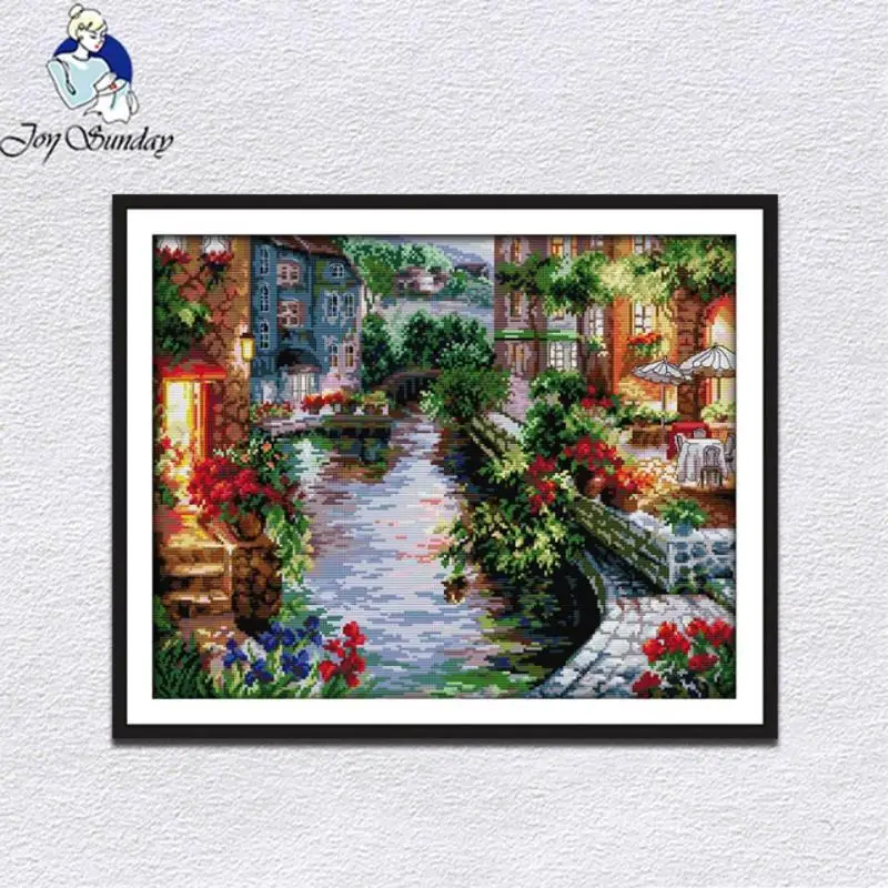 Joy Sunday Набор для вышивки крестиком с пейзажами Риверсайд, Китайская вышивка, рукоделие, украшения для дома, наборы для вышивки