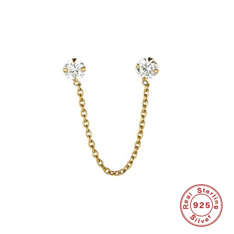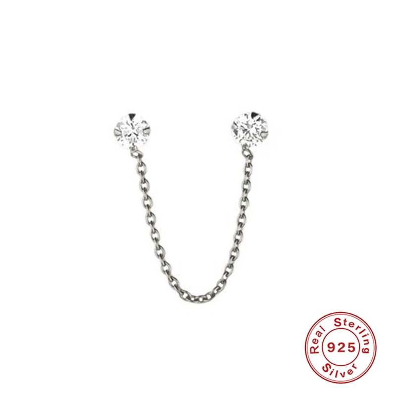 1 шт., красивые серьги из стерлингового серебра 925 пробы, корейские хип-хоп серьги с четырьмя когтями, инкрустированные цирконием, цепочка, Нитевдеватель, серьги-каффы унисекс A30