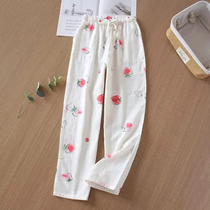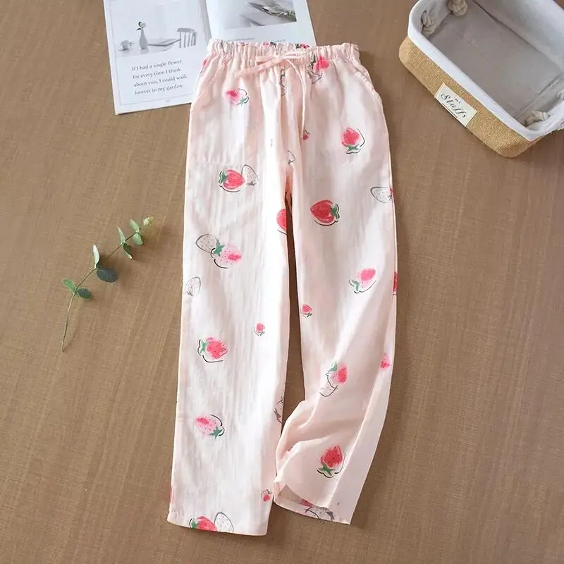 Весна-лето 2020, мягкие удобные домашние штаны, женские хлопковые Тонкие штаны из двойной марли для сна, штаны для сна, Повседневная Пижама с принтом