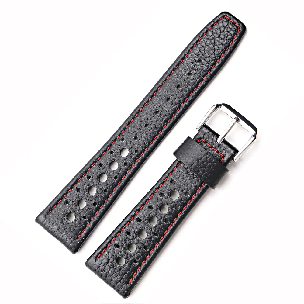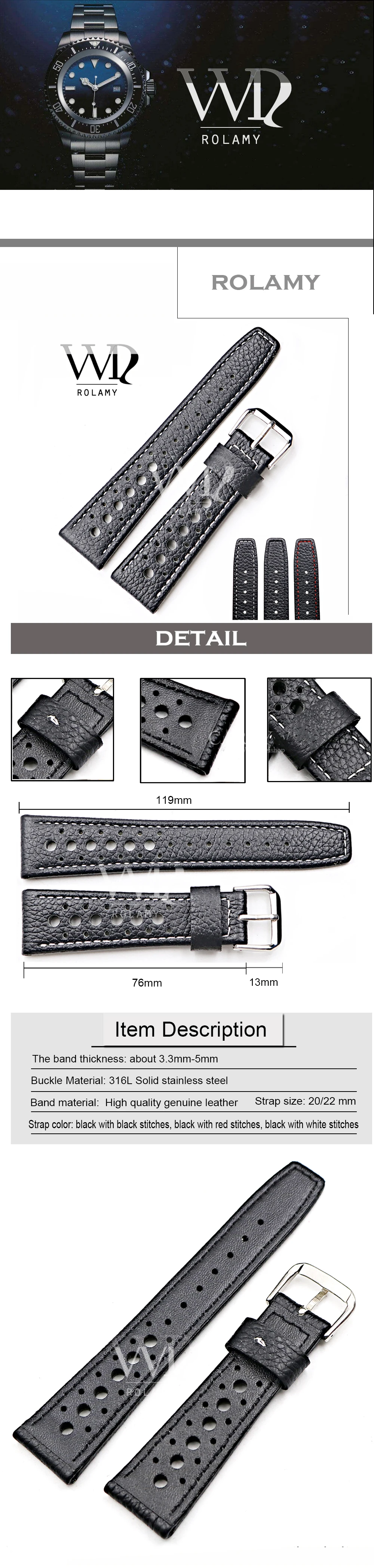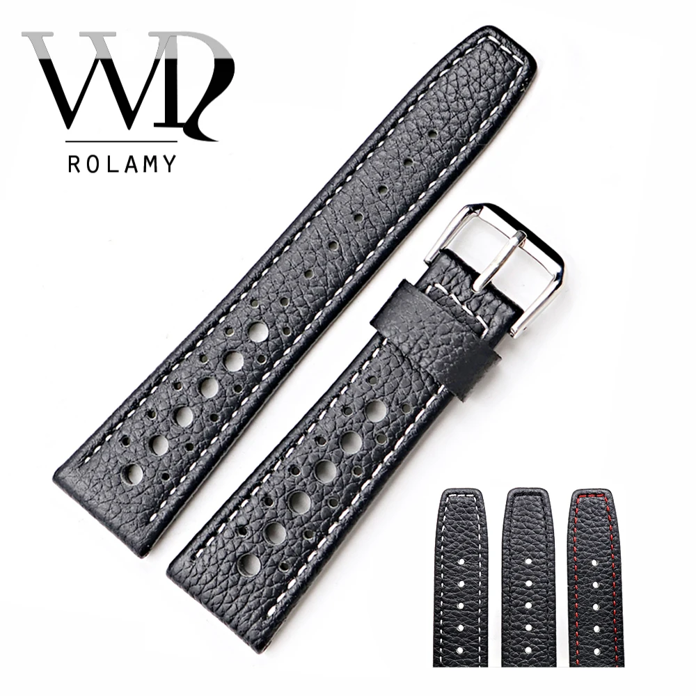 Ремешок для часов Rolamy, из натуральной телячьей кожи, черный, белый, красный, ручная работа