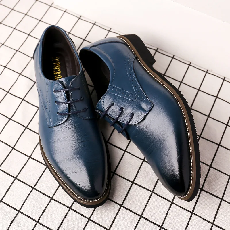 Мужские кожаные туфли-оксфорды, черные, синие, коричневые, повседневная обувь, новинка 2020