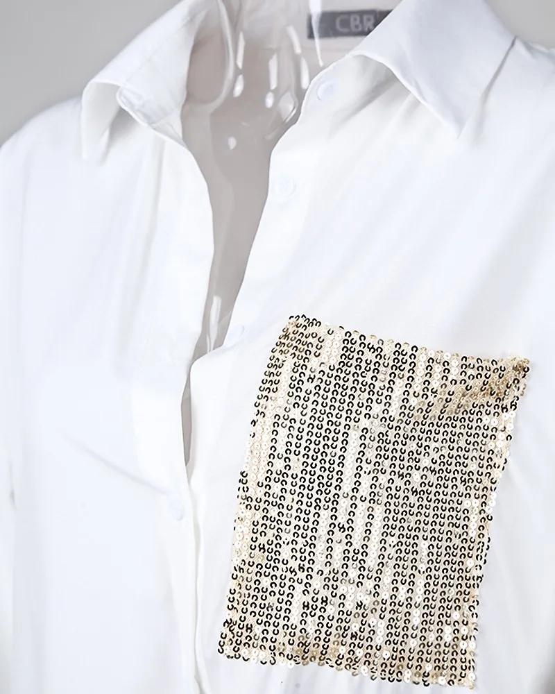 Женская рубашка с блестками и длинным рукавом + блестящие брюки, мо...