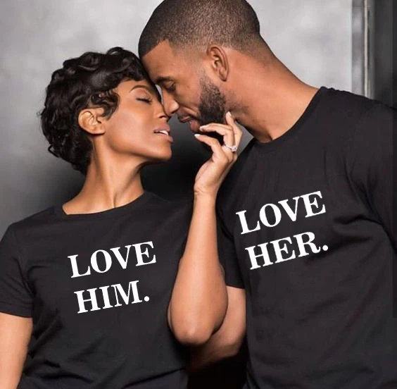 Футболка для влюбленных, парная одежда с принтом Love Him Love Her,...