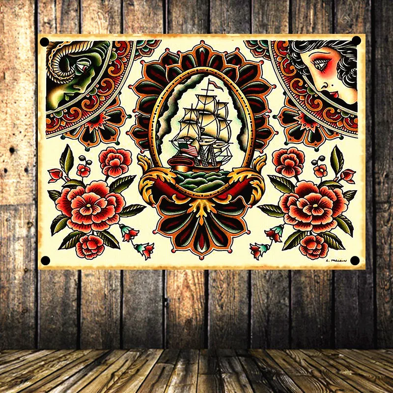 Винтажные Украшения для парикмахерской, флаг Татуировка постер для ...