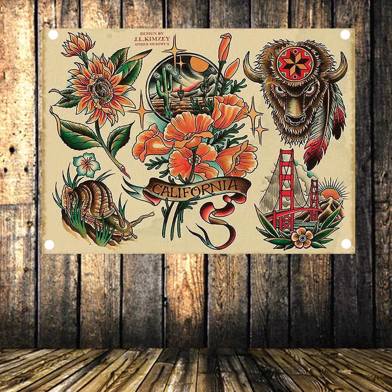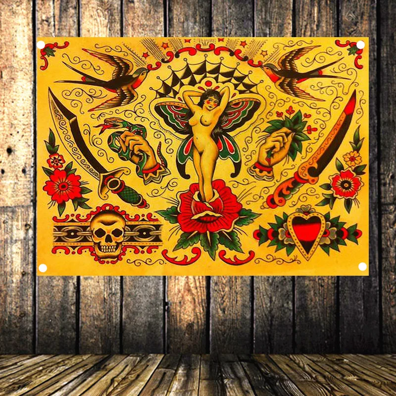 Декоративные баннеры с художественным рисунком для татуировок, оригинальные водонепроницаемые тканевые подвесные тканевые шторы, обивка, подарок