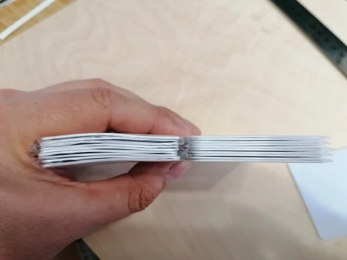 Заказывал 100 карт. Уже не в первый раз. Пришло время вскрыть посылку. 23 из них оказались кривые. Как будто их хранили с нарушением. Пришлось выкинуть. Такое с этими картами вижу в первый раз. Защитная плёнка на картах прилипла к картам- это почти на всех 100 штуках. Обидно. Поэтому советую сразу смотреть и открывать спор.