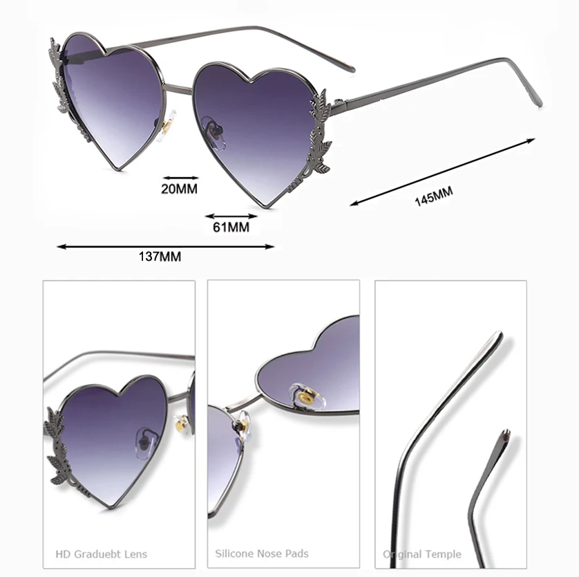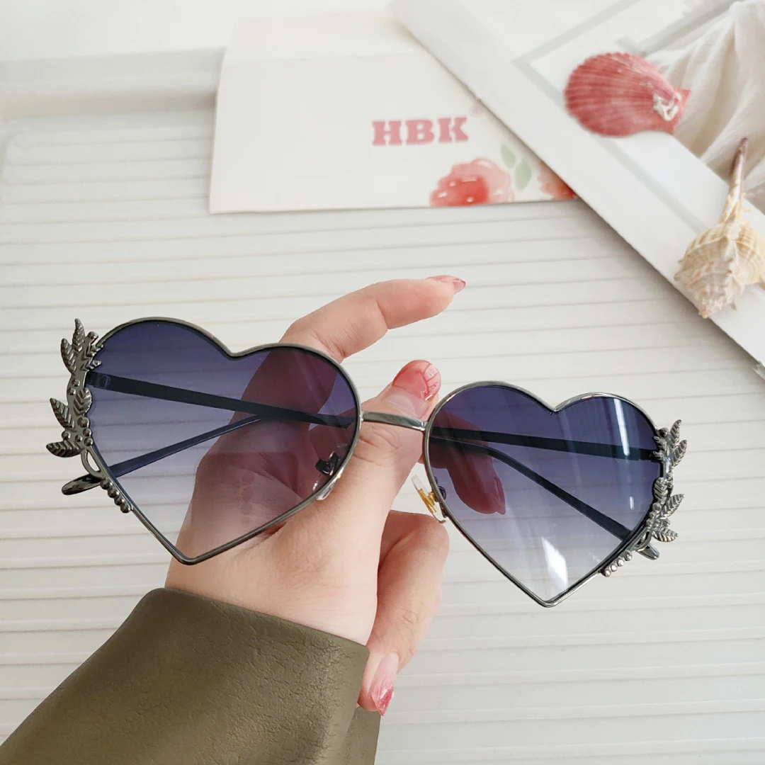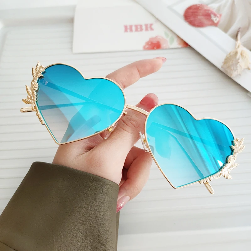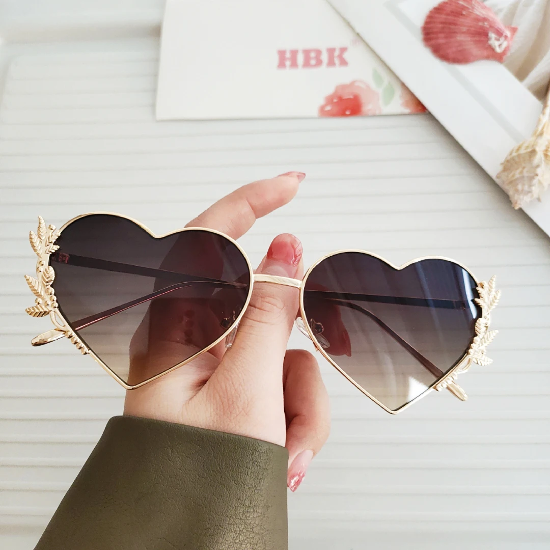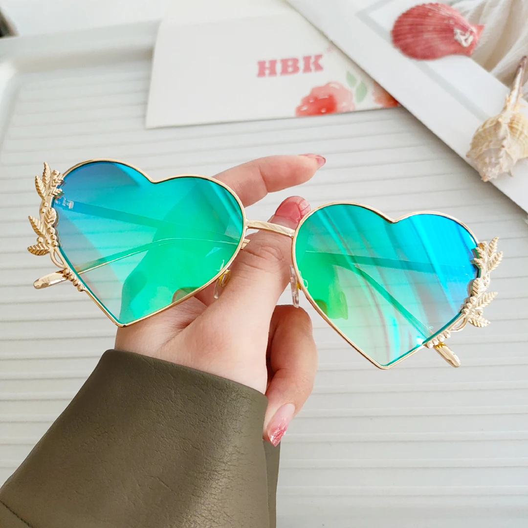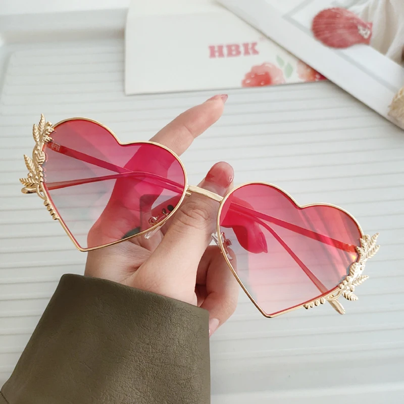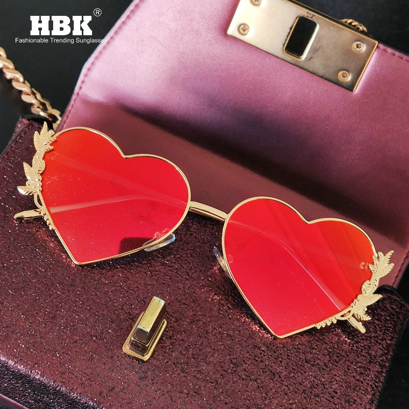 Солнцезащитные очки в форме сердца UV400 женские, металлические роскошные уникальные брендовые дизайнерские очки с красными зеркальными линзами, с защитой от ультрафиолета, для Рождества