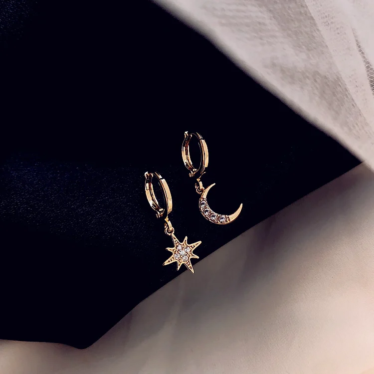 Звездные Асимметричные в форме Луны серьги, Продвинутые чувственные серьги, темпераментные женские серьги, новогодние трендовые красные серьги
