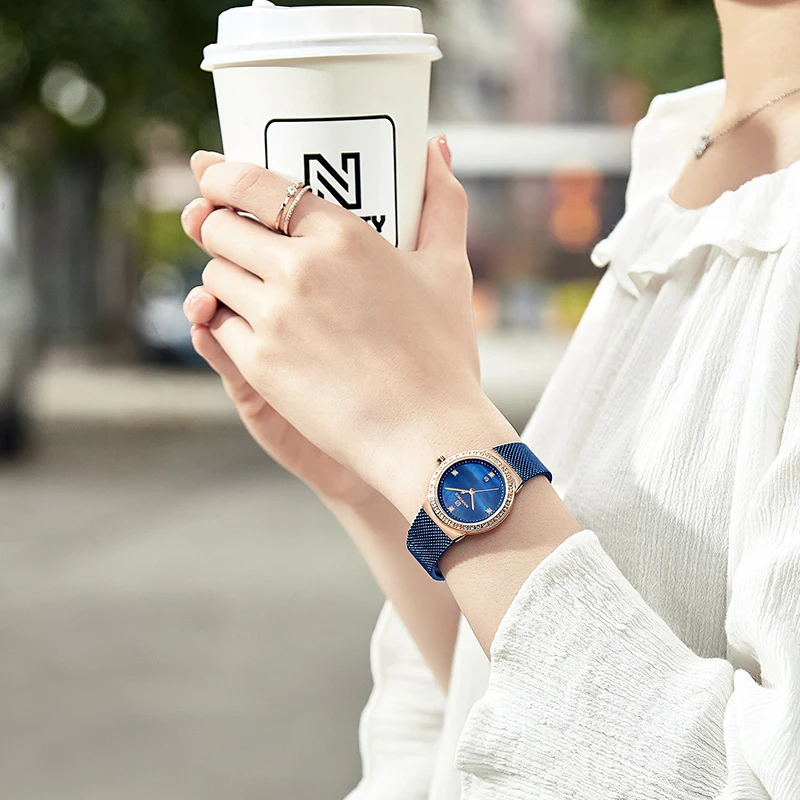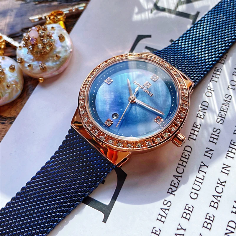 Роскошные модные часы NAVIFORCE, женские кварцевые часы из нержавеющей стали, простые наручные часы