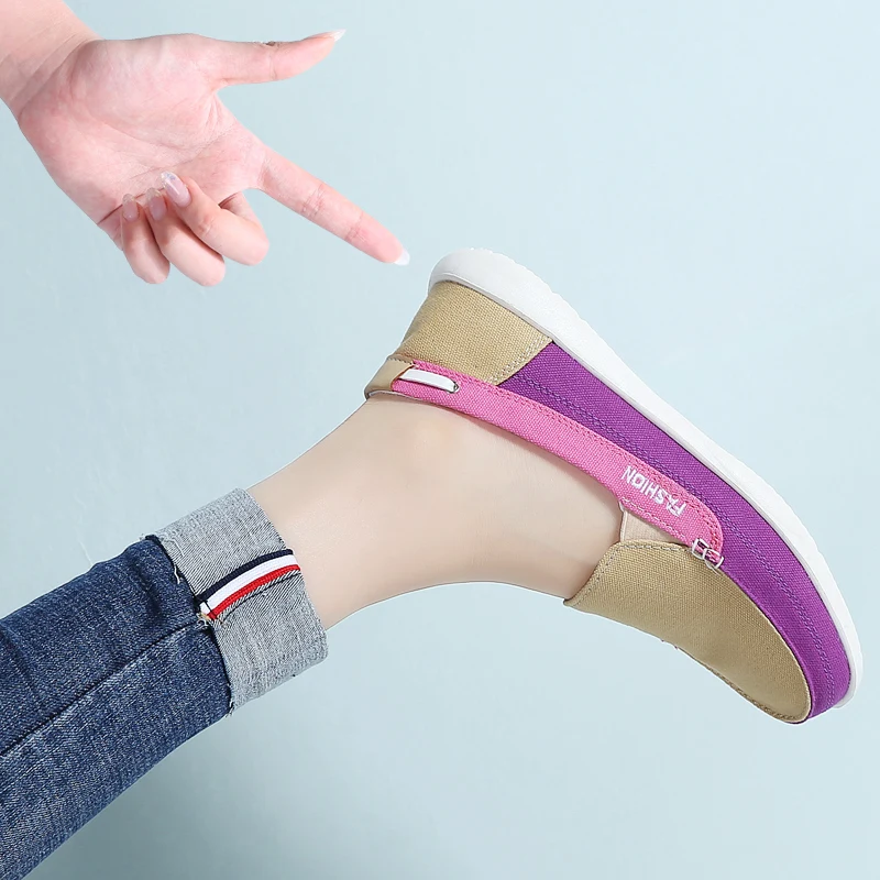 Туфли женские холщовые, повседневные лоферы, без застежки, мягкая дышащая обувь, конфетных цветов, женские туфли на плоской подошве 987