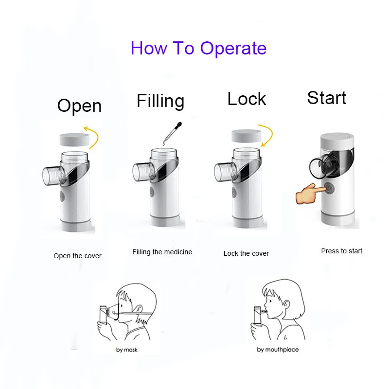 Простое управление кнопкой и простота в использовании, сочетают базовое энергопотребление и эффективное распыление, подходит для всех возрастов, особенно для детей и пожилых людей.Портативный Небулайзер-идеальный продукт для тех, кто нуждается в небулайзе на ходу.Помогает обеспечить паротерапию при простуде, гриппе, бронхите и других респираторных недугах.