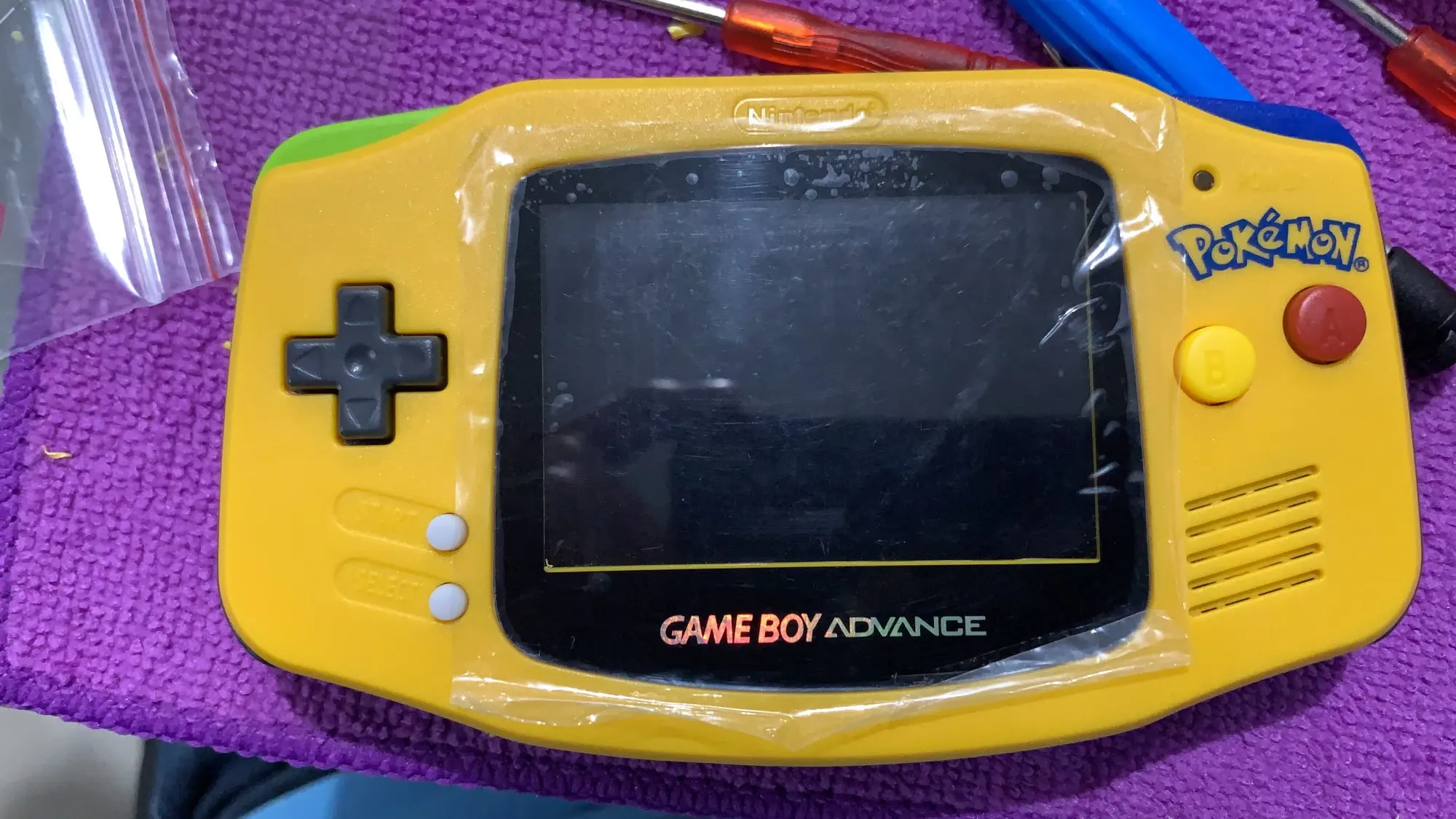 Доставка довольно быстро, быстрее, чем ожидалось. На передней поверхности была царапина (короткая белая линия). Я должен был удалить его, очистив царапину с помощью белого гладкого моноластика (японский моноластик). Теперь эта часть корпуса более гладкая и менее пористая (гладкость видна только при определенных условиях освещения, когда она непосредственно отражает свет). Есть небольшая разница в цвете от оригинала (оригинальный от 5% до 10% ярче/светлее). И логотип «GameBoy Advance» на передней защитной пленке темнее, чем оригинал, и немного отличается в надписях (если вы не являетесь экспертом, вы совсем не заметите). Не совсем проблема, особенно по цене.