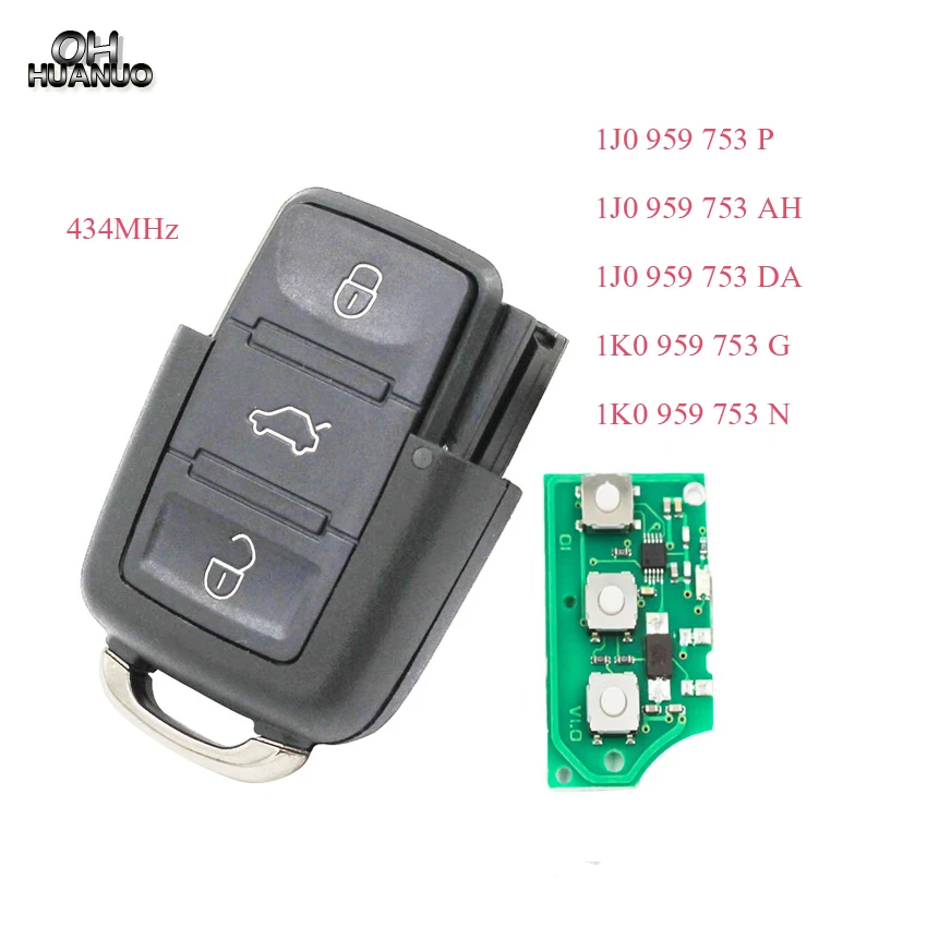 3 кнопки дистанционного управления 433/434 МГц для ключа VW 1J0959753P/1J0959753AH/1J0959753DA/1K0959753G/1K0959753N для Volkswagen