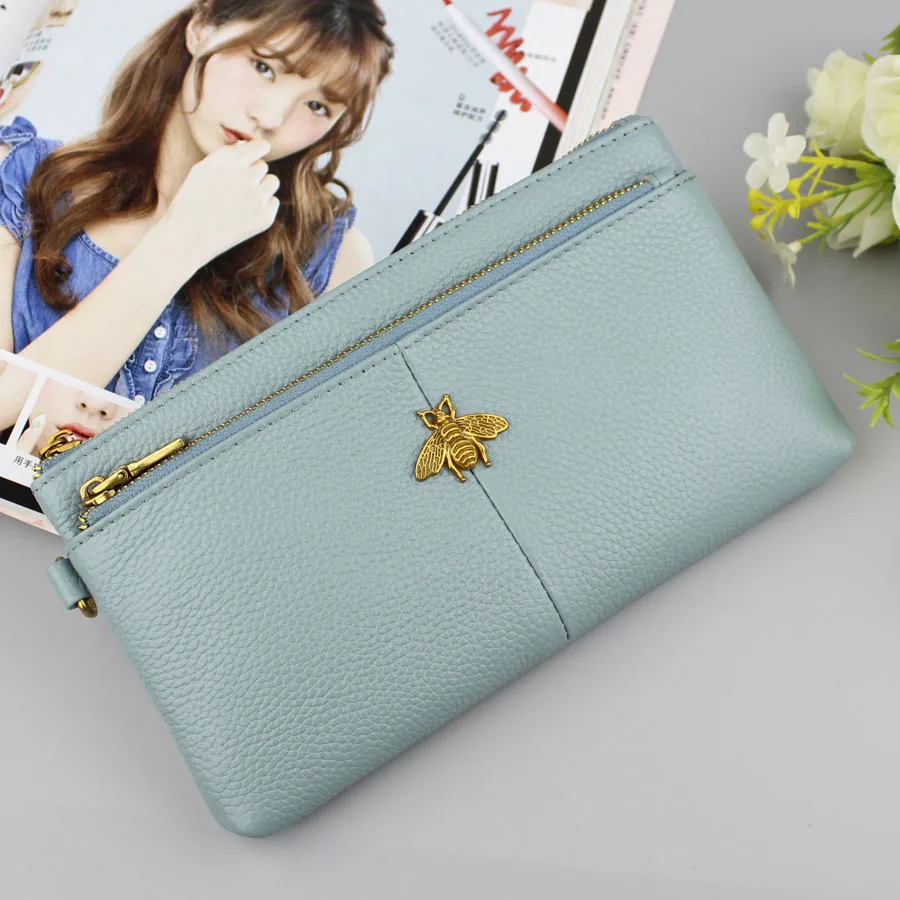 Женские кошельки из натуральной кожи, модный длинный кошелек в виде пчелы, роскошный брендовый женский клатч, женские кошельки из натуральной кожи