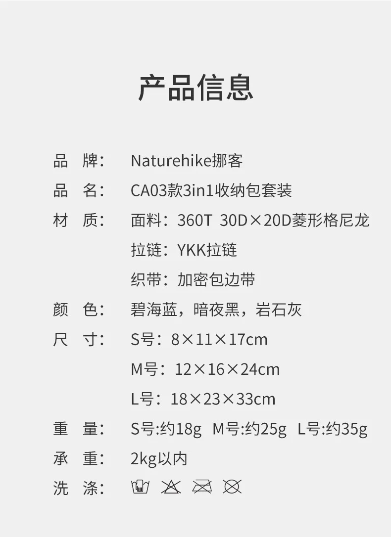 Дорожная сумка для хранения одежды Naturehike, Многофункциональный складной мешок для путешествий, водонепроницаемая сортировочная сумка для багажа, черного и серого цвета, 3 шт.