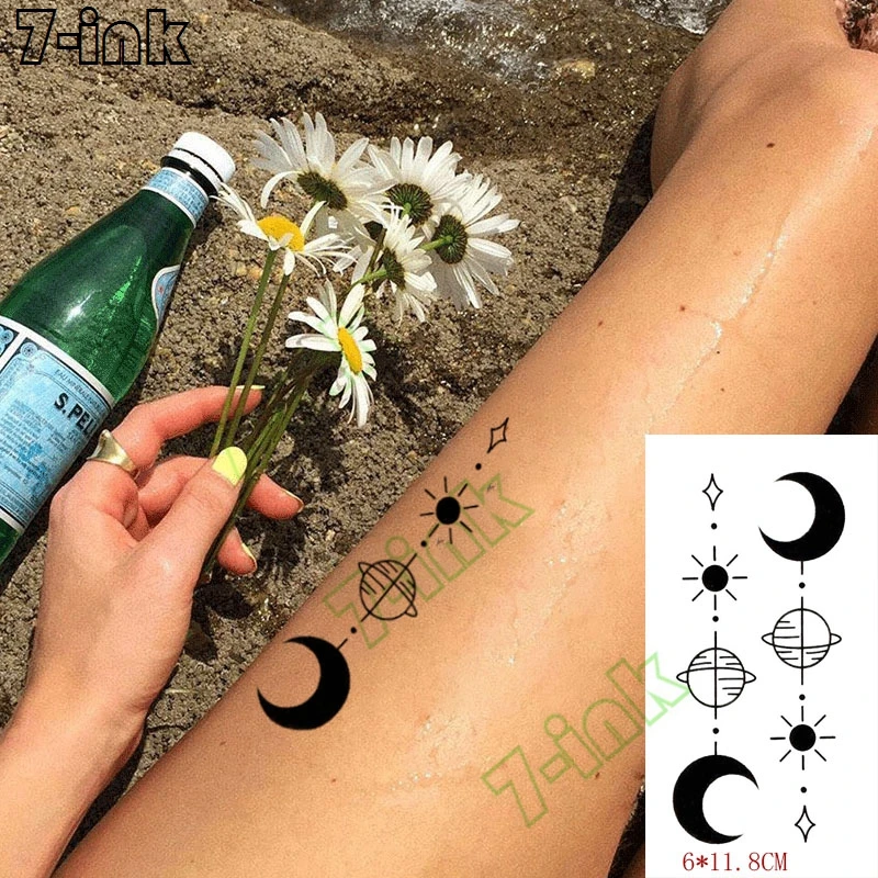 Временные татуировки, наклейки, солнце, луна, звезда, змея, пистолет, девушка, рука, боди-арт, водонепроницаемые татуировки, флэш-тату, искусственные татуировки для мужчин, женщин, детей