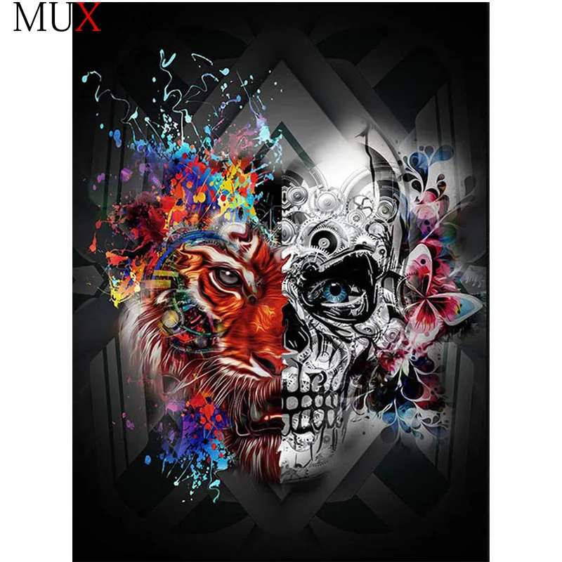 Картина из страз 5D, вышивка крестиком, рисунок черепа и тигра, 3D вышивка из страз, полноразмерная Мозаика из страз, подарок