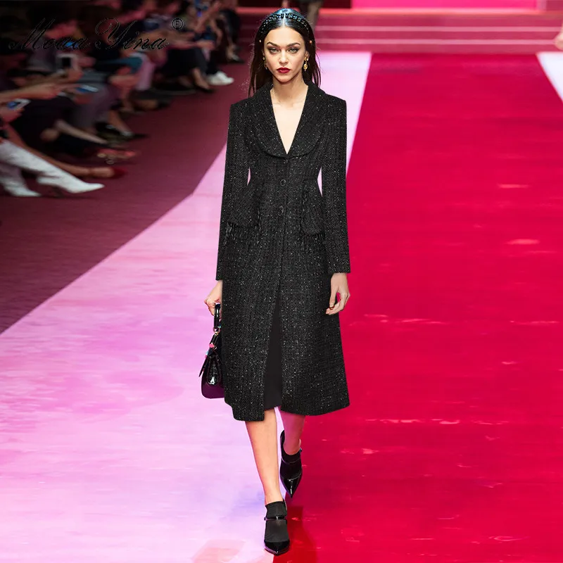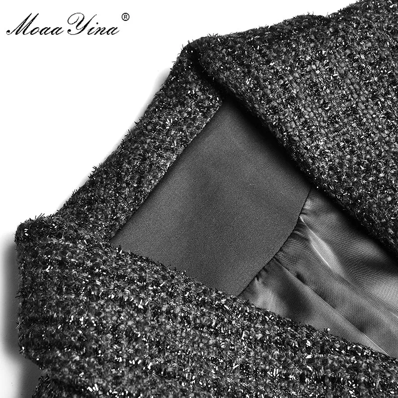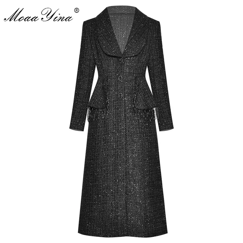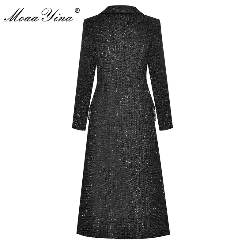 MoaaYina, модное дизайнерское шерстяное пальто, ветровка, Осеннее женское однобортное пальто с длинным рукавом, расшитое бисером