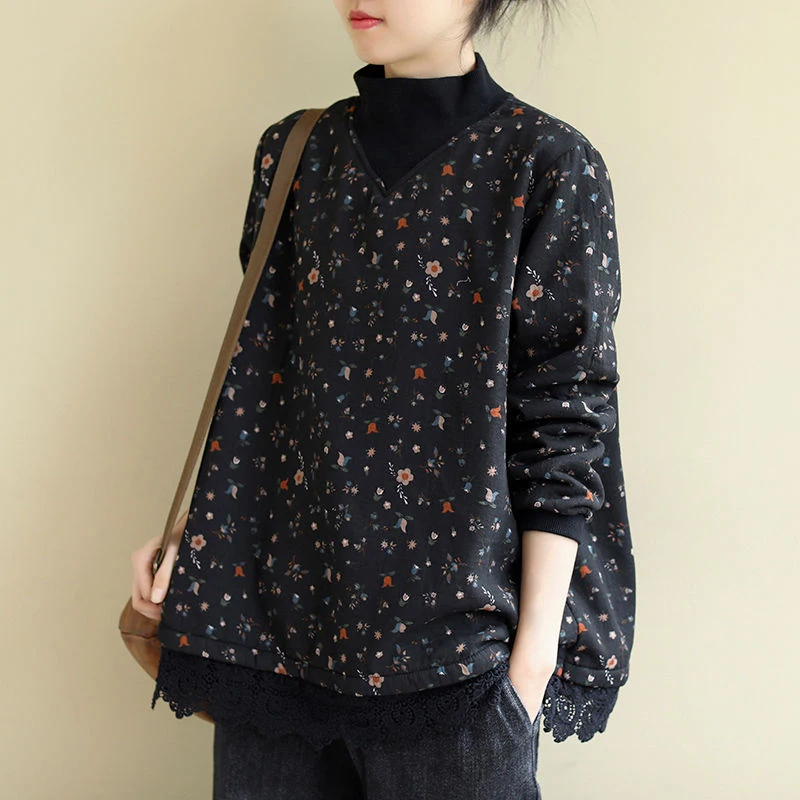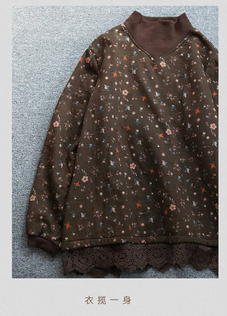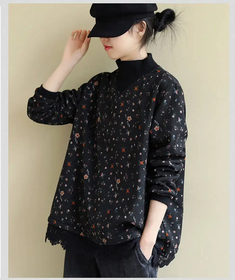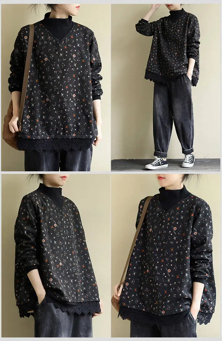 Новинка, осенние женские пуловеры в художественном стиле с длинным рукавом, Свободные Лоскутные кружевные пуловеры, универсальные повседневные хлопковые толстовки с винтажным принтом S559