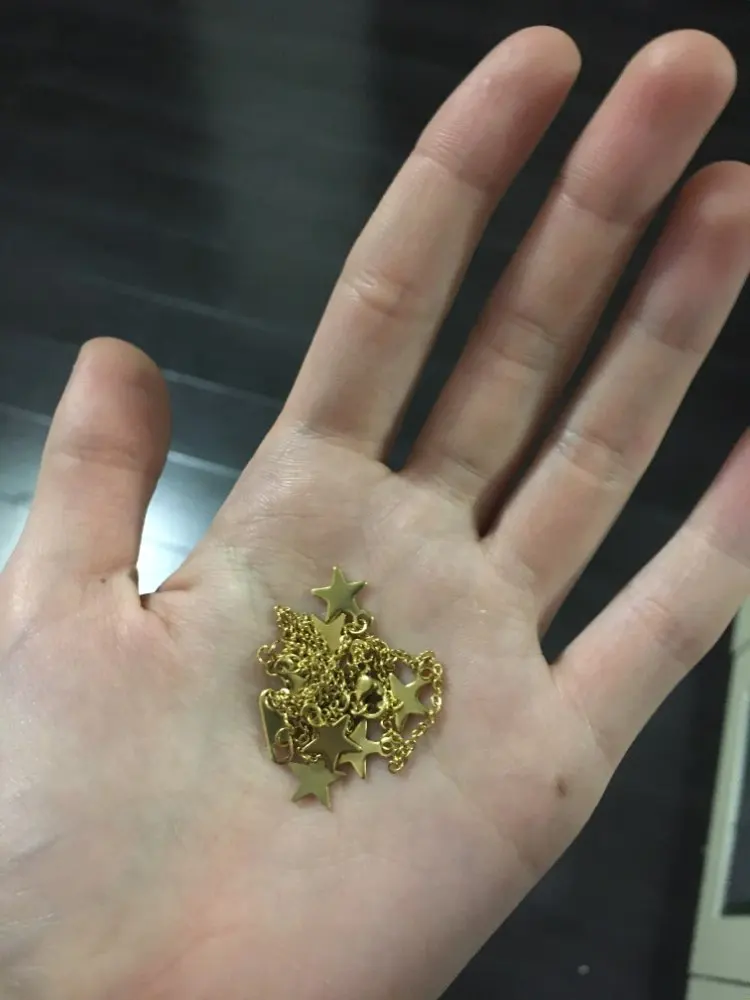 Ожерелье очень красивое, оно блестит и является прекрасной меркой, которую я ожидала. Я связался с продавцом, и он ответил очень быстро и любезно, чтобы подтвердить, что я могу промокать, потому что это нержавеющая сталь.