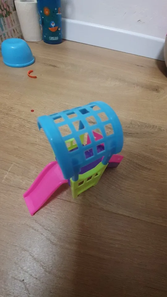 заказ целый, но горка не держится, выпадает. склеили клеим,чтоб не выпадала.