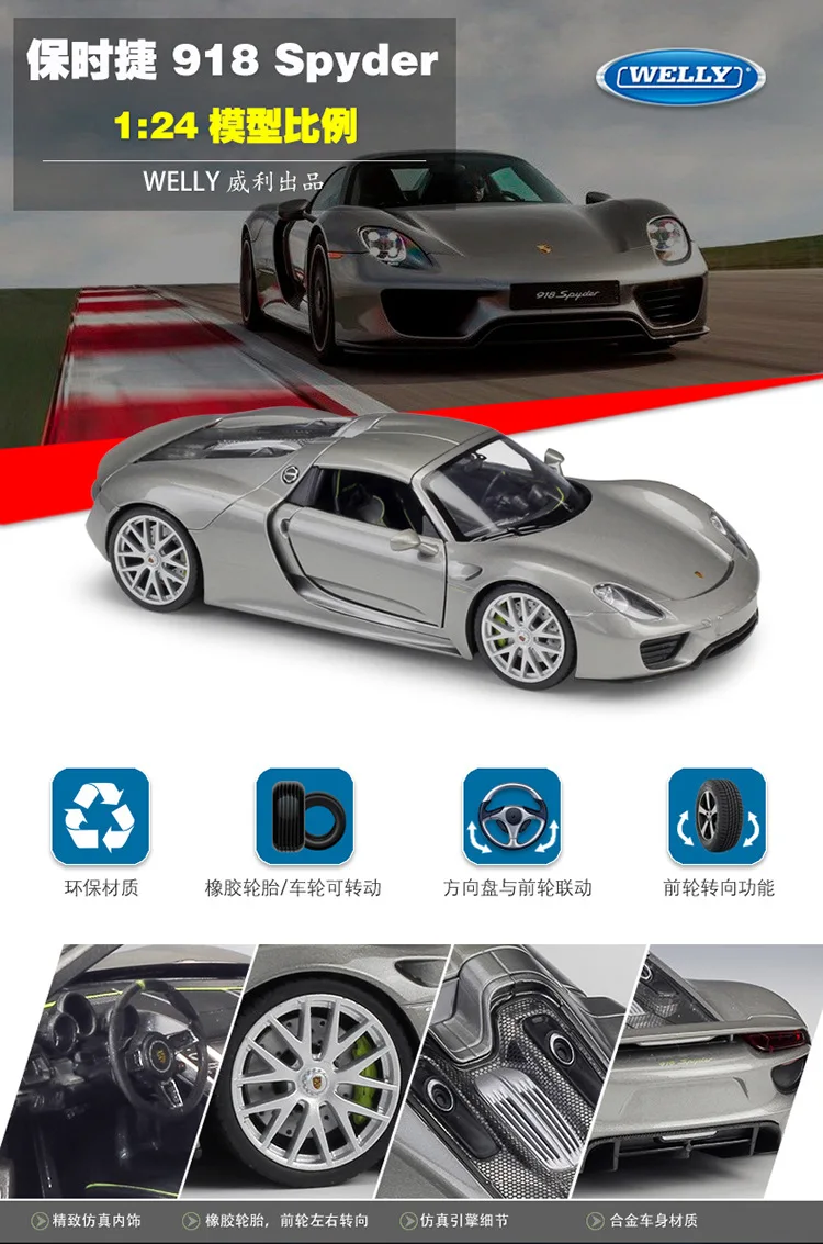 Модель автомобиля Welly 1:24 Porsche 918 Spyder, модель автомобиля ...