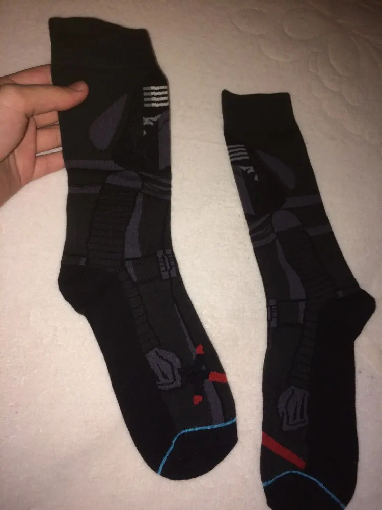 Носки соответствуют описанию и своим картинкам. Но размеры.. - я со своим 47м оказался в пролёте: короткие носки вообще не тянутся, длинные ещё более-менее, но очень напряжены. Женский 38-39 для коротких носков Ок. Моя длина стопы около 300-305мм. Ставлю 5 - покупал с надеждой на новогоднее чудо и картинки понравились.