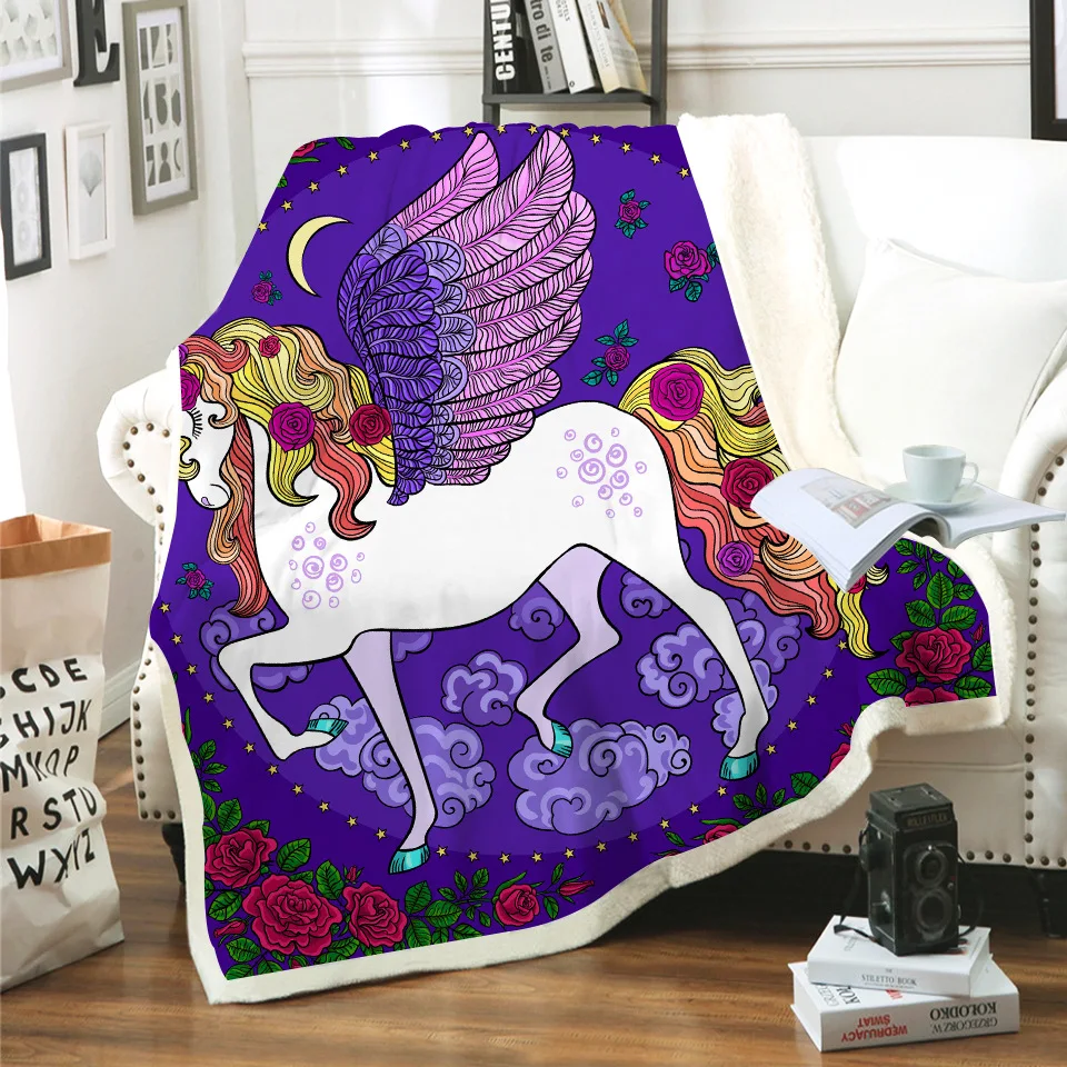 Одеяло из шерпы с 3D принтом единорога и лошади, покрывало на диван, дорожное постельное белье, выход, бархатное плюшевое покрывало на флисе, покрывало 09