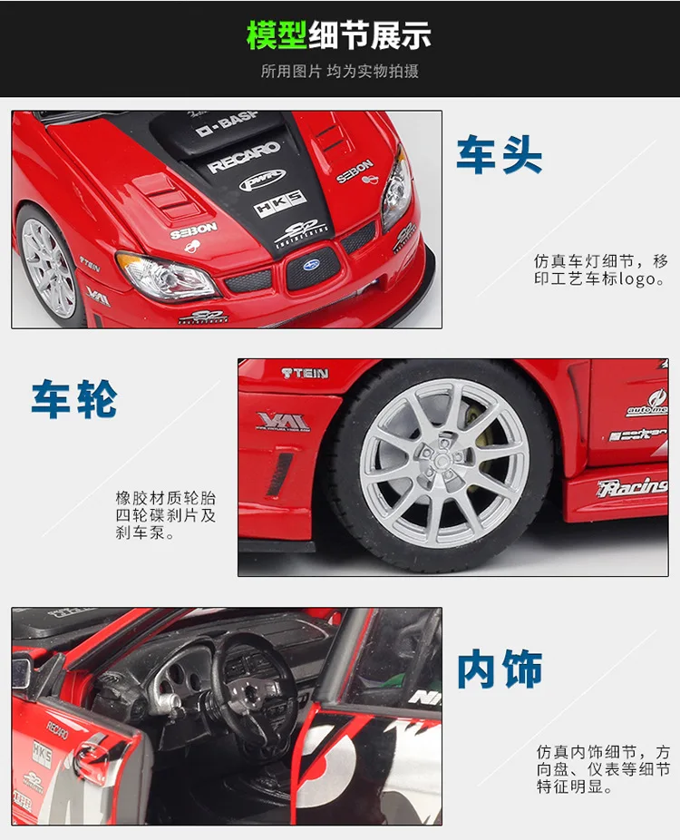Подарок премиум класса 1:24 subaru wrx sti модель спортивного сплав...