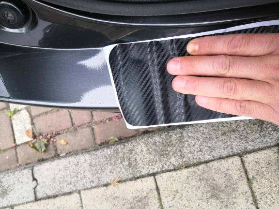 Это не плохой продукт для защиты автомобильного бампера. Это простая имитация углеродной наклейки