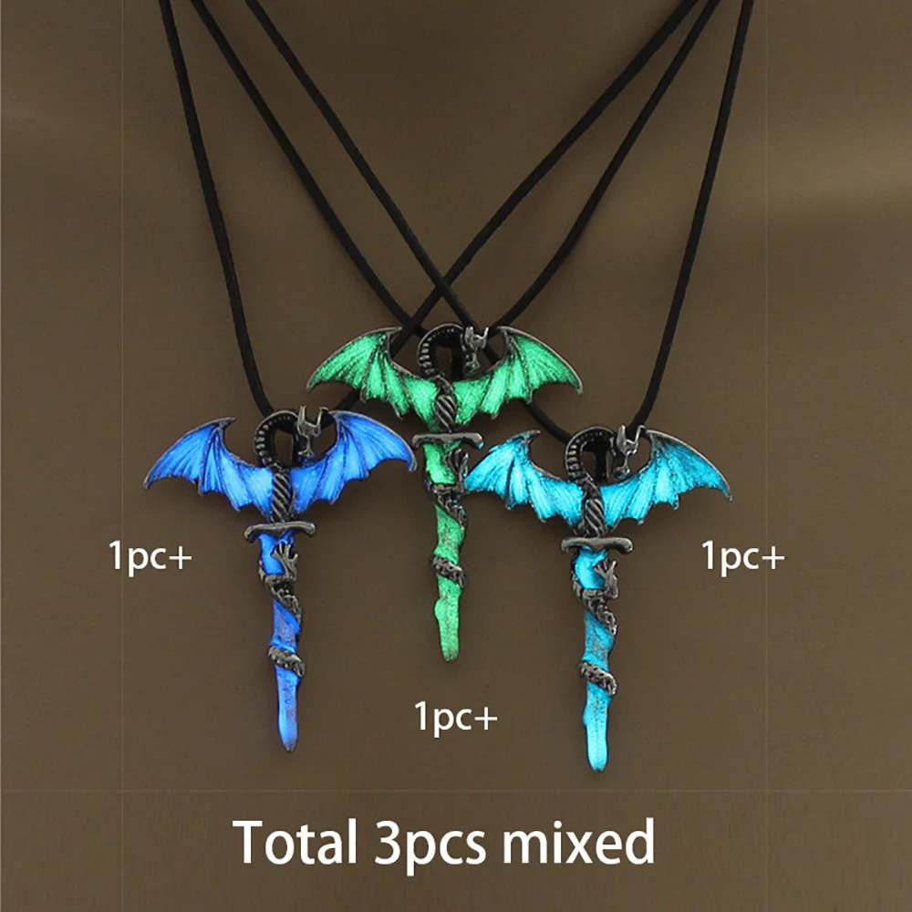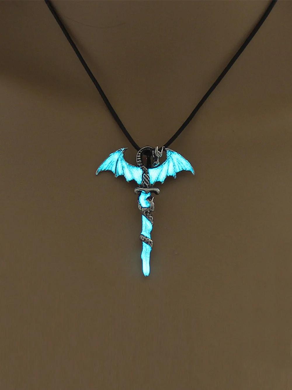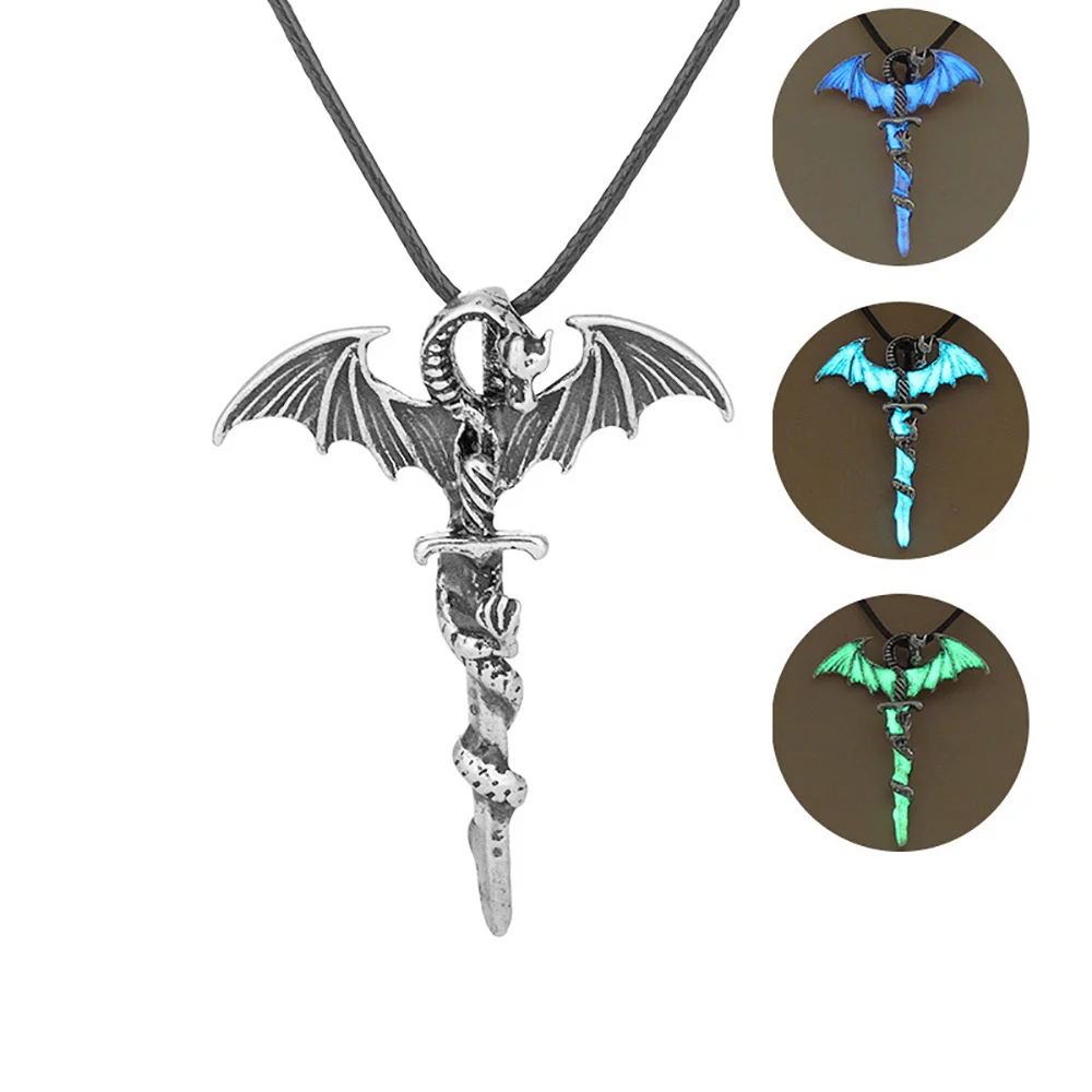 Светящееся ожерелье, светящаяся Ночная флуоресценция, светится в темноте меч, винтажный кулон в виде дракона, ожерелье для мужчин и женщин, вечеринка, Хэллоуин