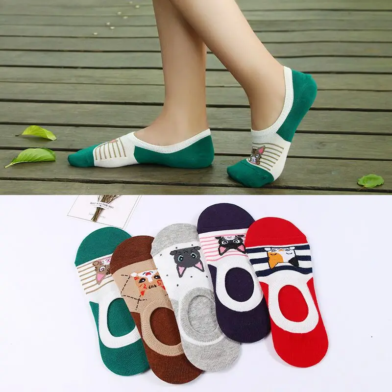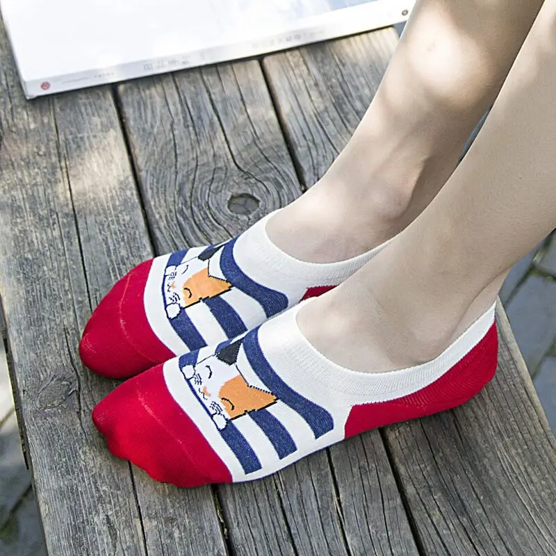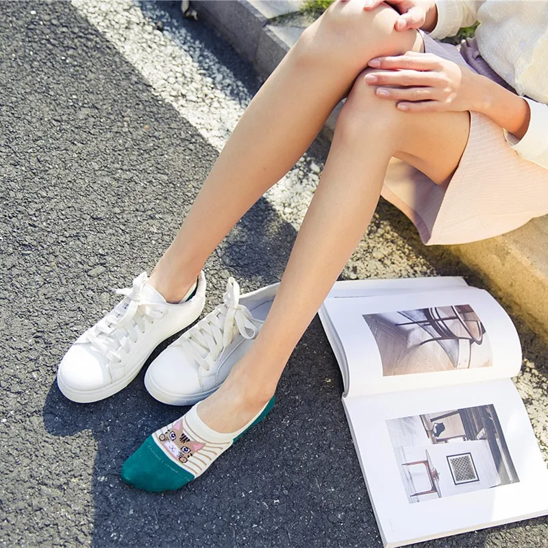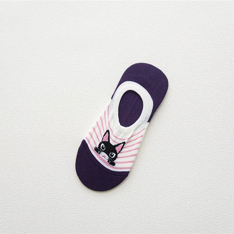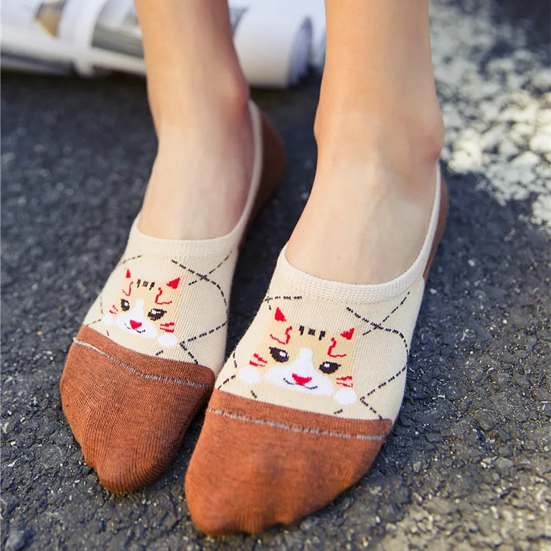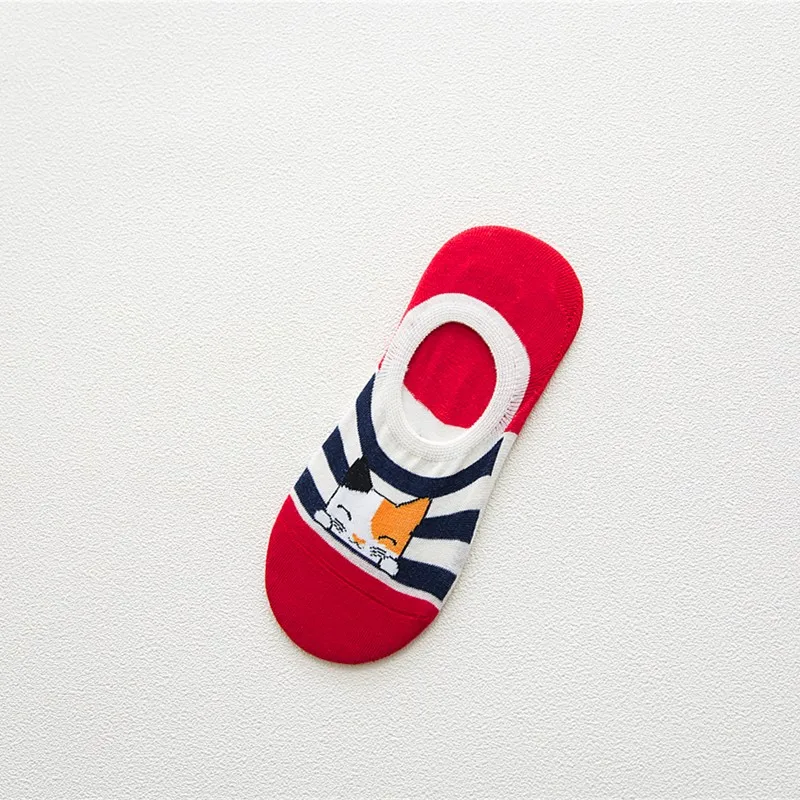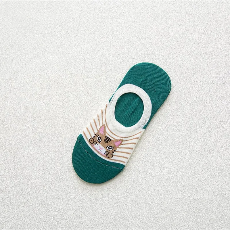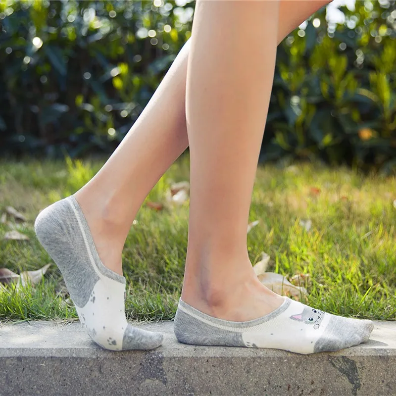 Удобные летние носки-башмачки с рисунком кота, женские хлопковые но...