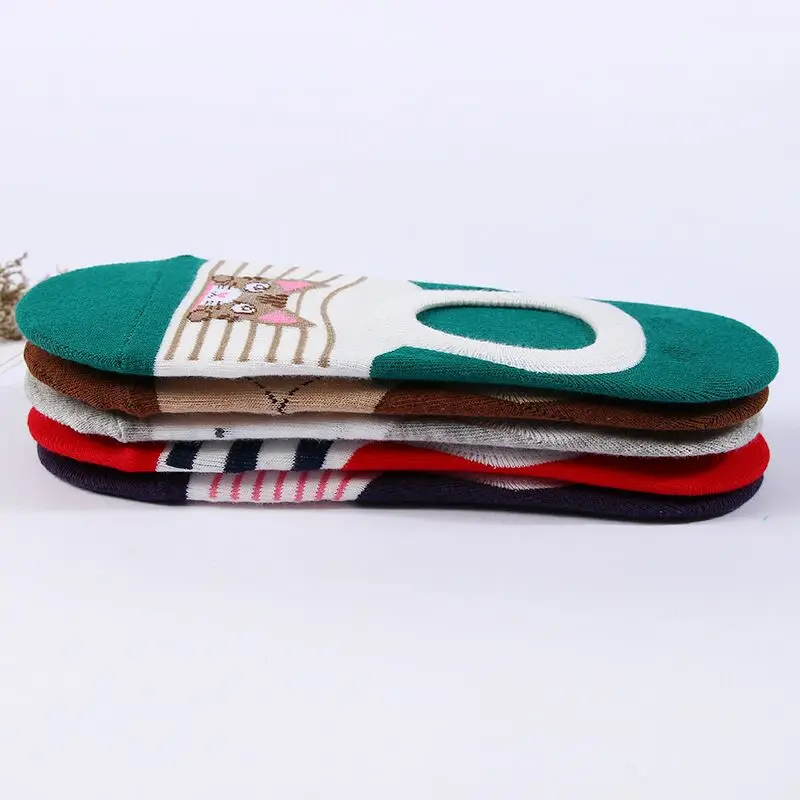 Носки женские хлопковые в полоску с мультяшным котом, мягкие удобные повседневные короткие носки-следки карамельных цветов, 5 пар, для весны и лета