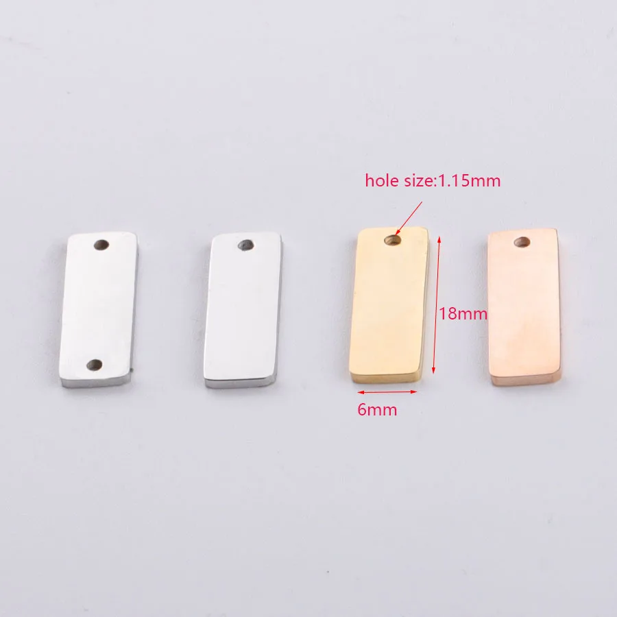 Серебро/золото/розовое золото нержавеющая сталь 1/2 отверстия прямоугольные бирки амулеты для гравировки металла бар тег зеркальная полировка оптовая продажа 20 шт
