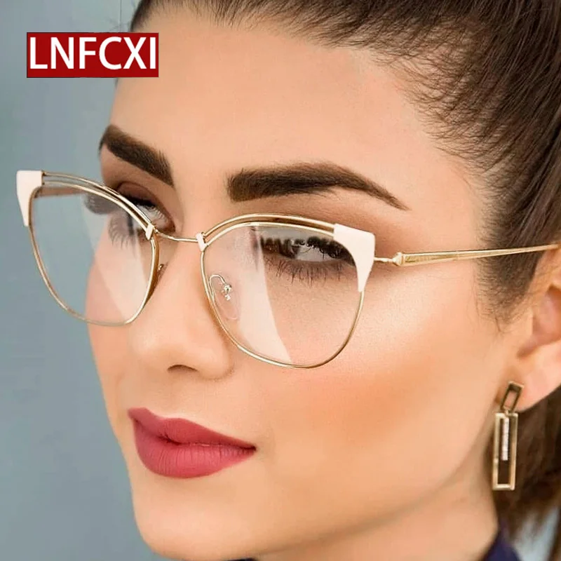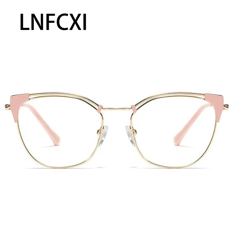 LNFCXI кошачий глаз простые металлические оправы для очков мужские и женские оптические Модные прозрачные компьютерные очки для женщин