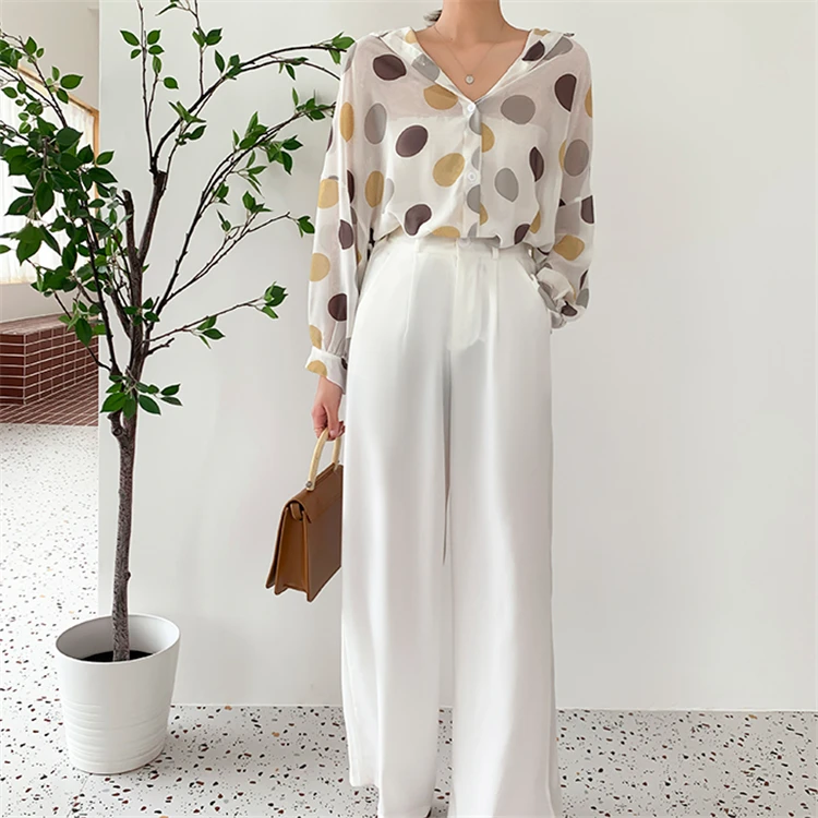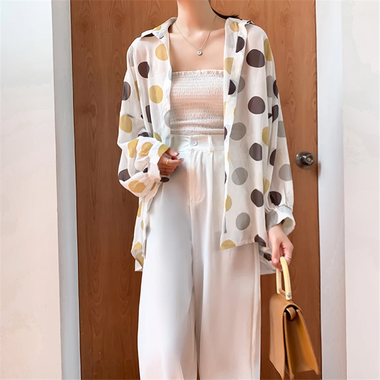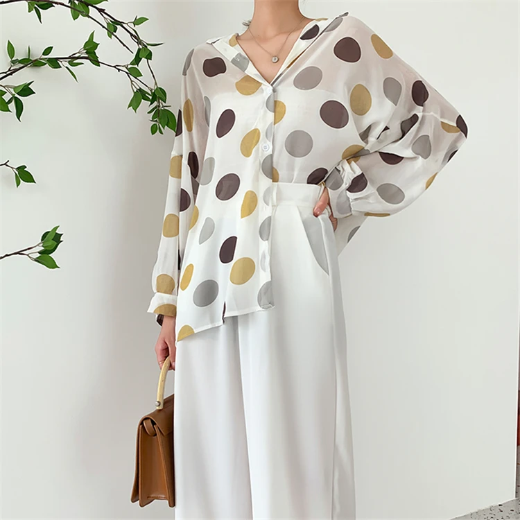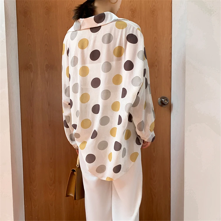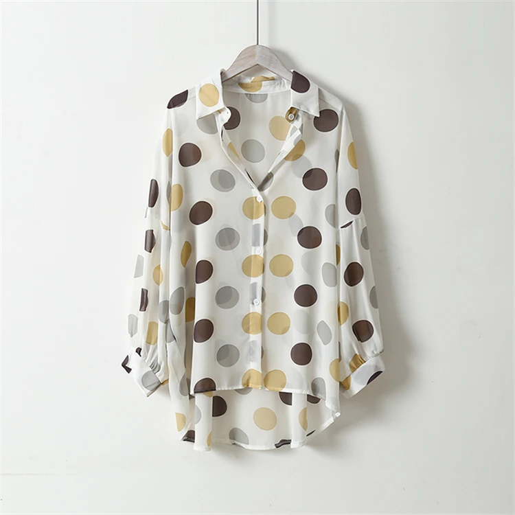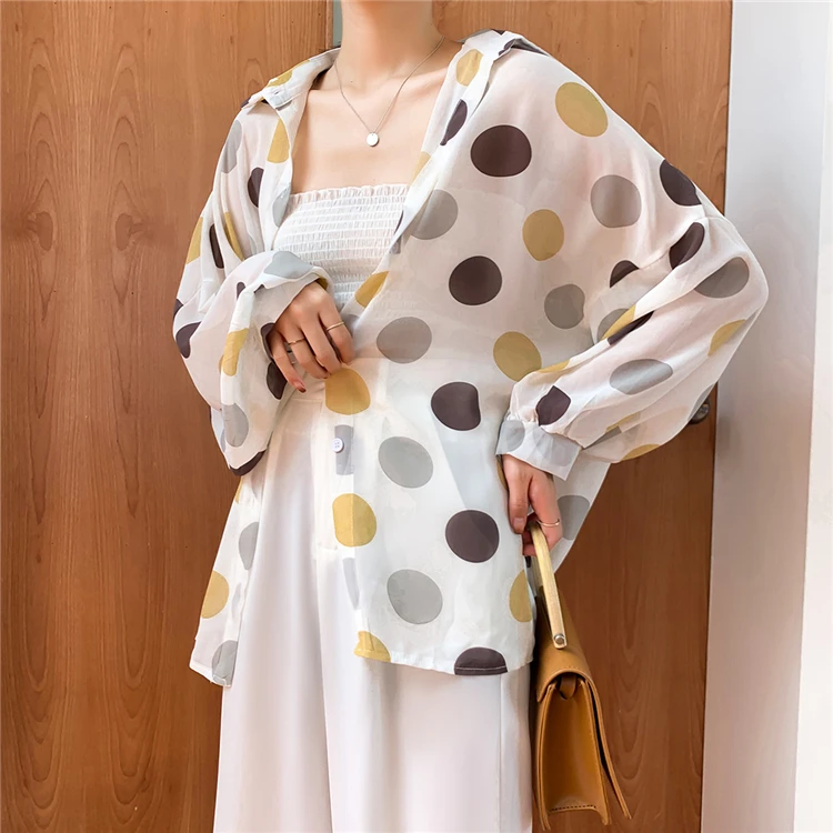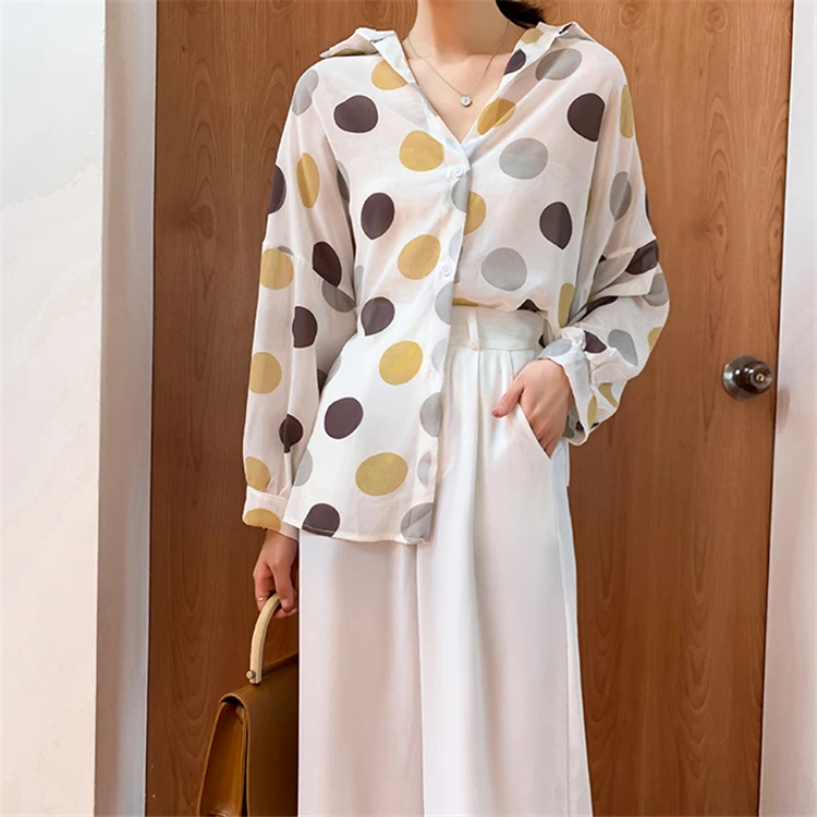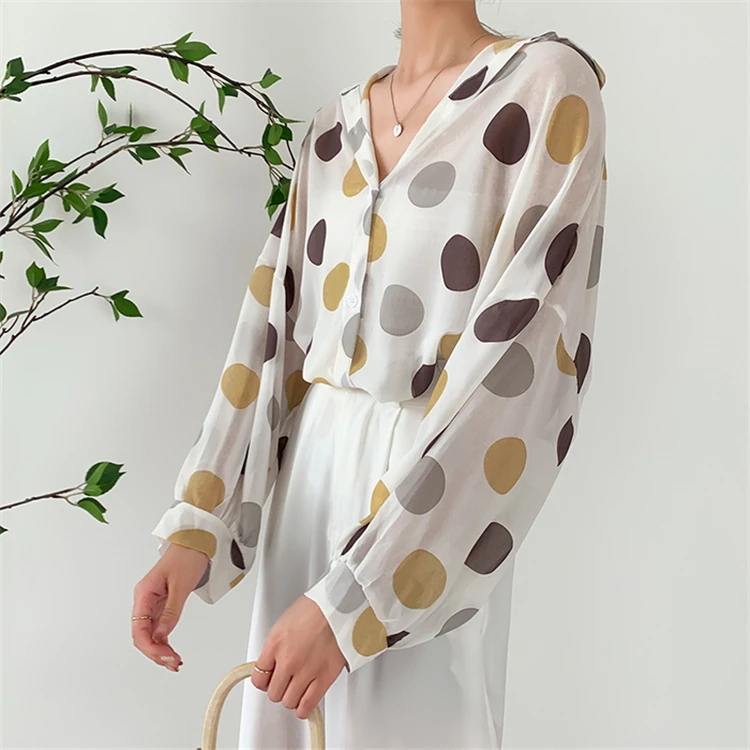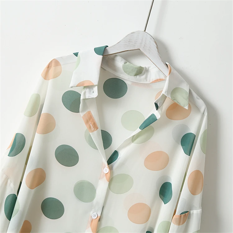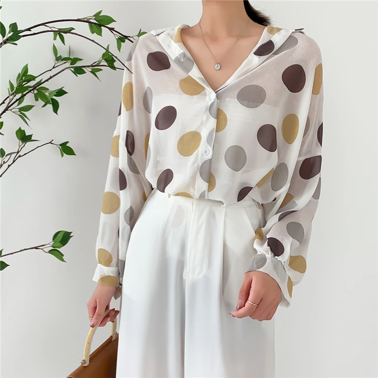 Женская шифоновая блузка Colorfaith, однобортная Свободная блузка в горошек с прозрачными лацканами, весна-лето 2020, BL6780