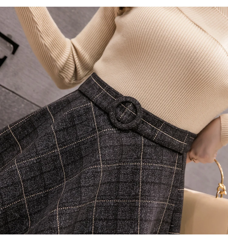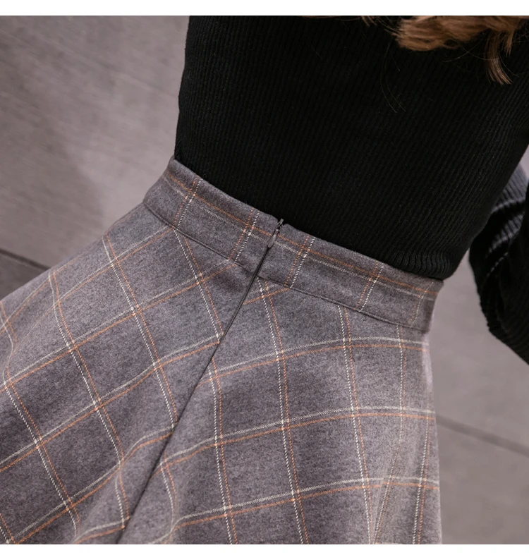 Осенне-зимняя мини-юбка, женские клетчатые шерстяные юбки с высокой талией, женские трапециевидные плиссированные плотные шорты, юбка, женские юбки