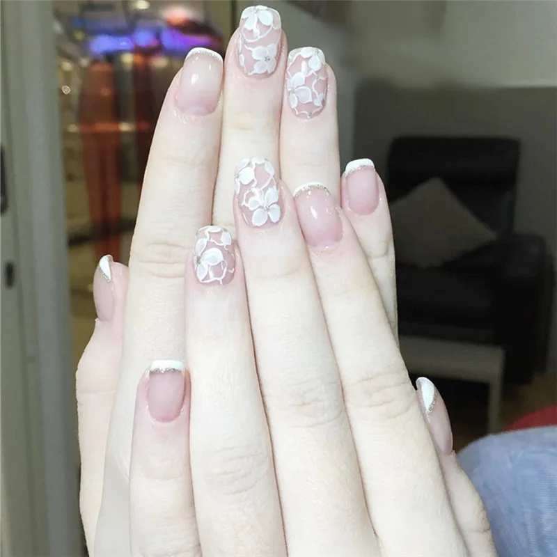 24 шт.компл. французские накладные ногти с клеем в стиле OL обнаженные розовые свадебные накладные ногти съемные накладные ногти декоративные накладные ногти