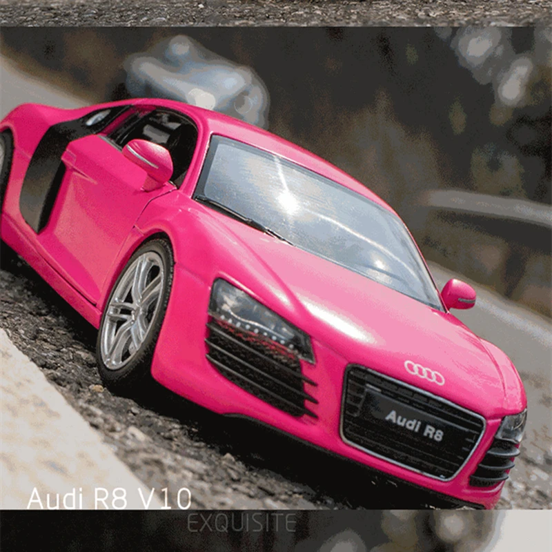 Welly 1:24 Audi R8 V10 Розовая модель автомобиля из сплава моделирование украшения автомобиля коллекция Подарочная игрушка Литье под давлением модель игрушка для мальчиков