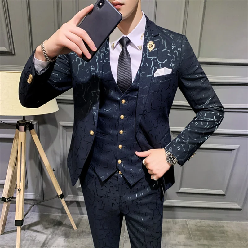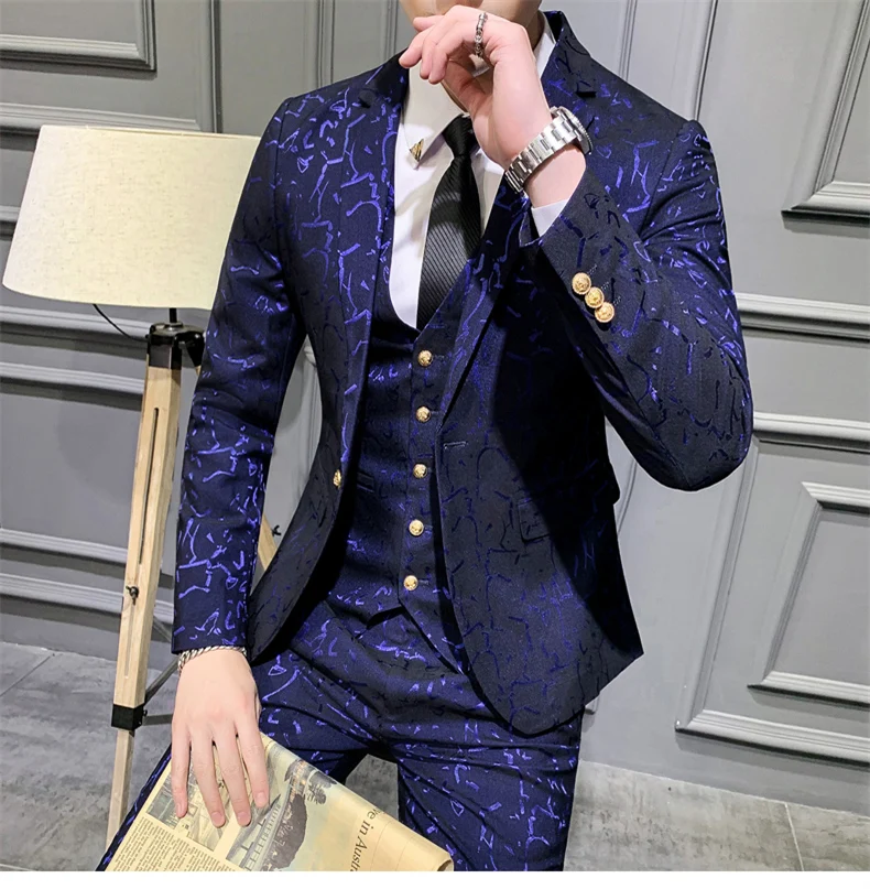Роскошный мужской костюм, пиджак, брюки, жилет, дизайнерские костюмы, приталенный мужской смокинг для жениха, королевский синий бордовый мужской костюм s