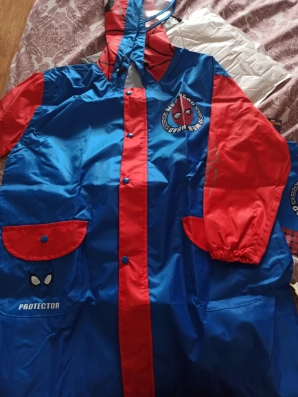 Очень яркий, прочный, качественный плащ. Размер мне показался немного больше заявленного по размерной таблице, но возможно так и должно быть на верхнюю одежду. Доставку осуществили быстрее, чем ожидалось. Спасибо продавцу!