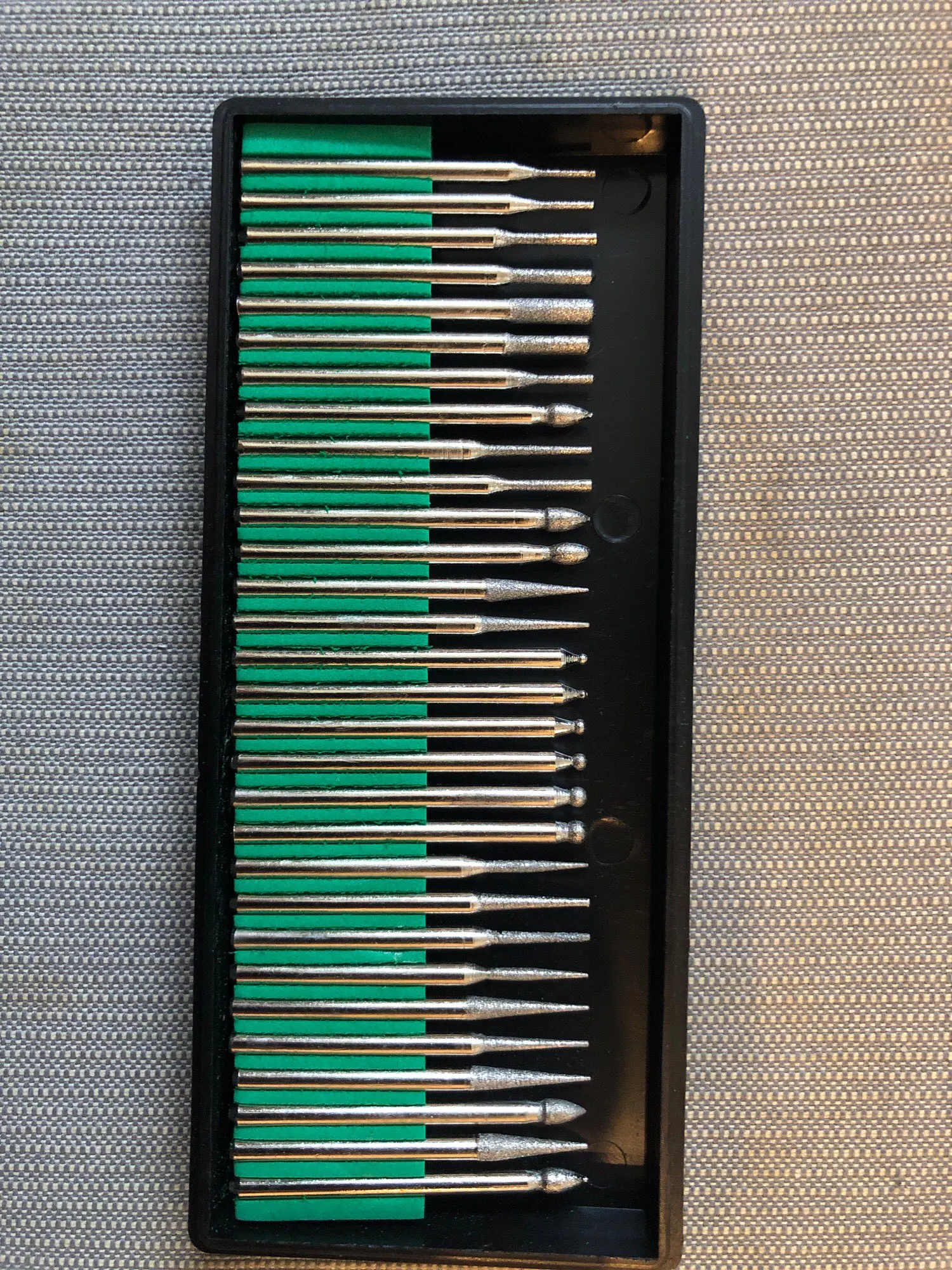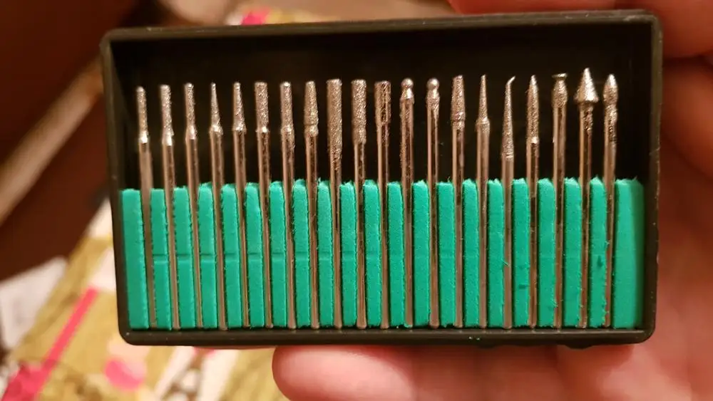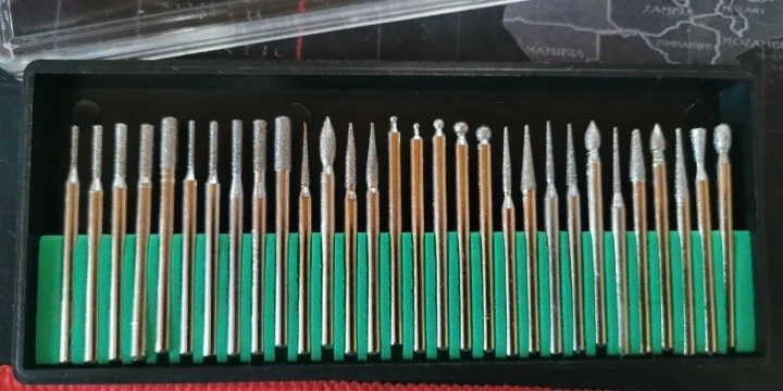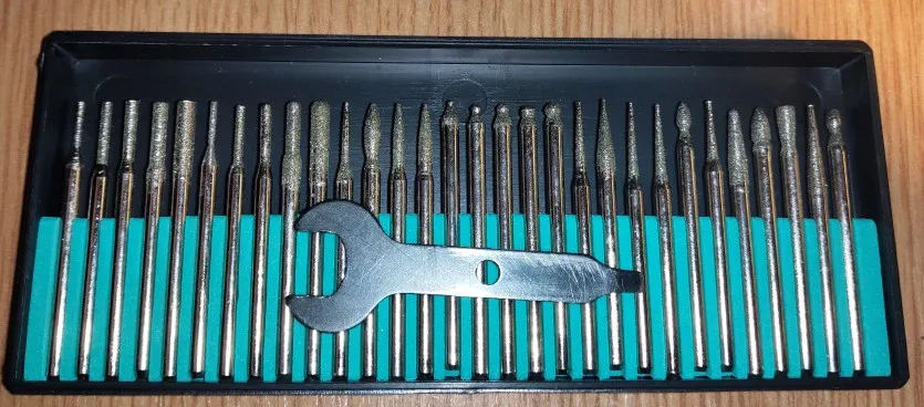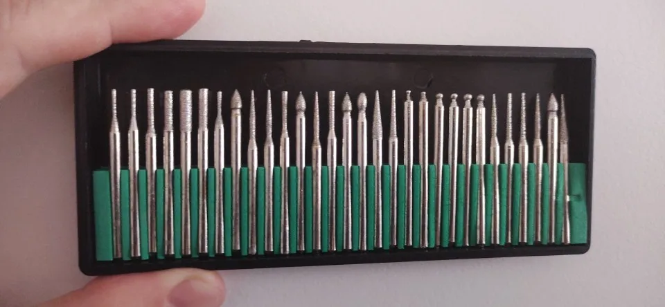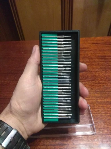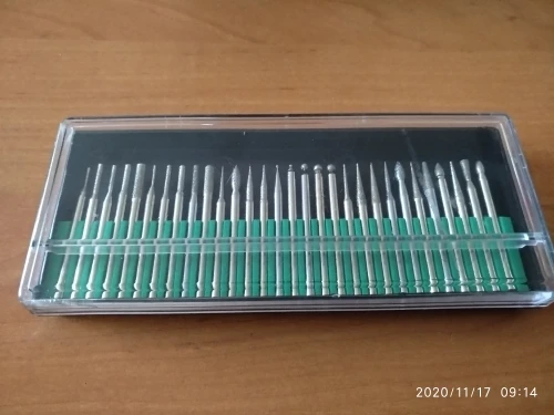 Драсссссссссть) Покупкой доволен. Всё как в описании. Пришло чертовски быстро, всего за 17 дней! Брал для мелкой работы. Напыление, алмазное, есть на всех тонких насадках, чего для меня достаточно, но на остальных в некоторых местах не хватает напыления. Не критично, но немного обидно, хотя за такую цену грех жаловаться)