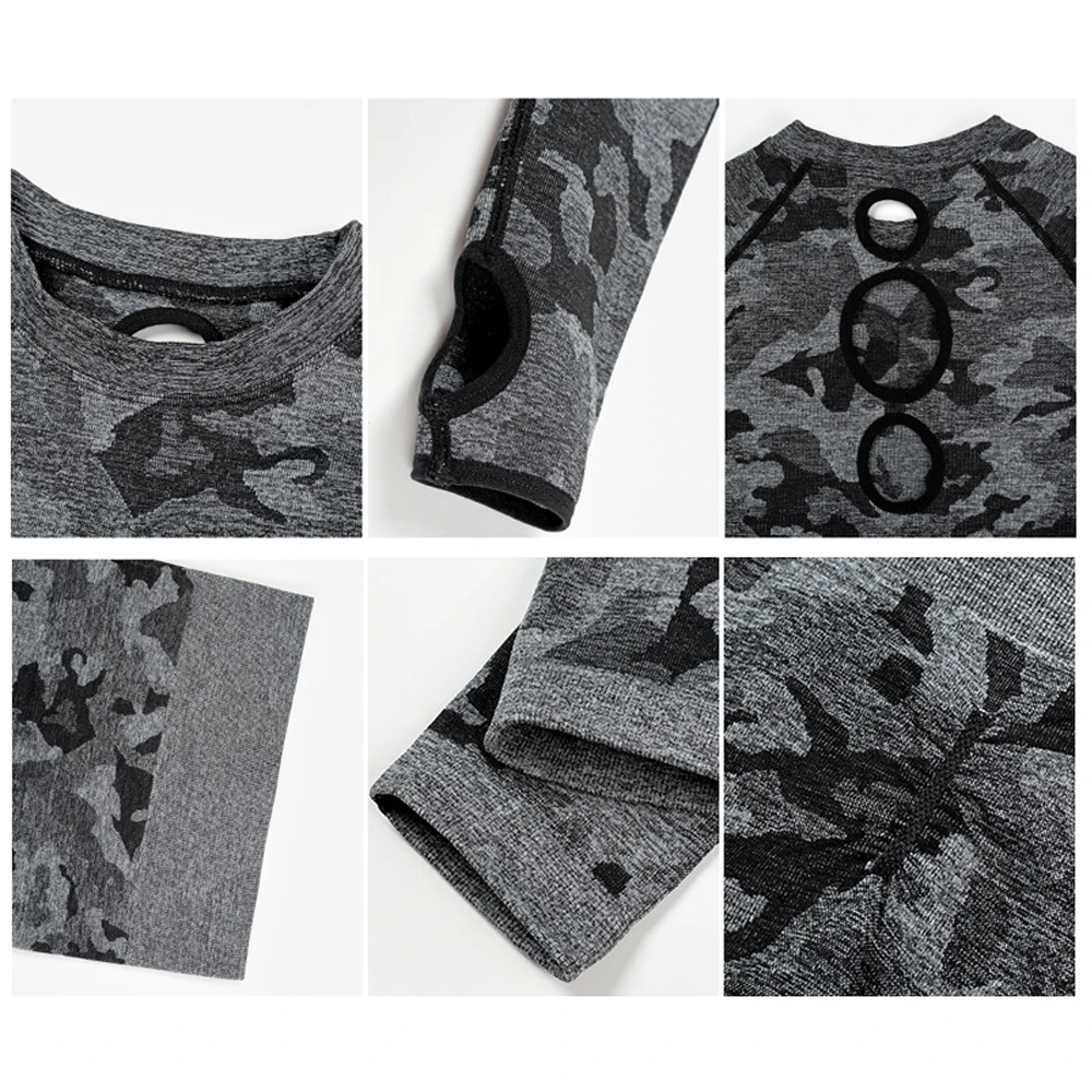Женский комплект для йоги, бесшовный спортивный костюм, женский спортивный костюм для фитнеса, камуфляжный спортивный костюм с длинным рукавом, комплект из 2 предметов, тренировочная одежда для женщин, спортивная одежда
