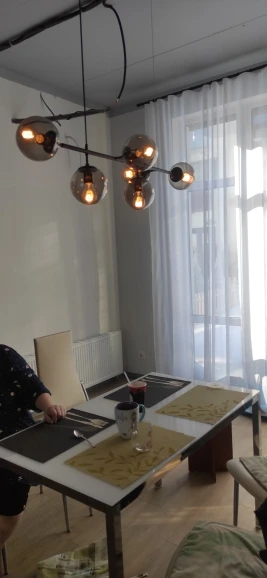 Люстра шла до СПб очень долго, месяц или полтора. В заказе выбирала чёрный цвет, тк именно он нам подходит. Продавец по какой-то причине положил золото. Цвет неприятный и совсем нам не подходит. Открыла спор, посмотрим, что будет. Возвращать и заказывать у них новую времени нет, приняли решение перекрасить ее. Упаковано хлипковато, часть пенопласта было покрышечно, но на удивление все пришло целым. Плафоны в местах крепления не идеальны по форме, но это не критично.