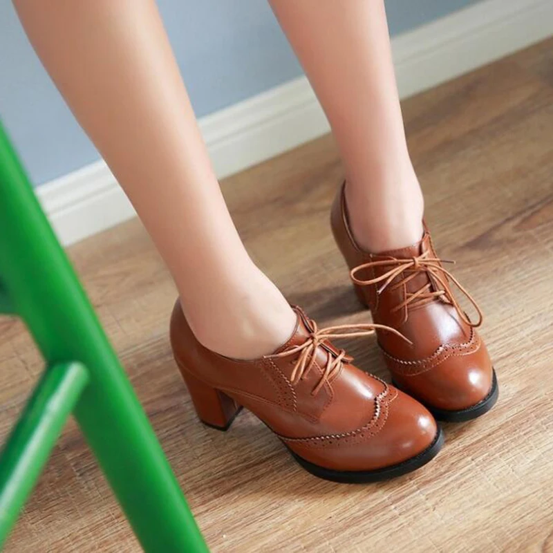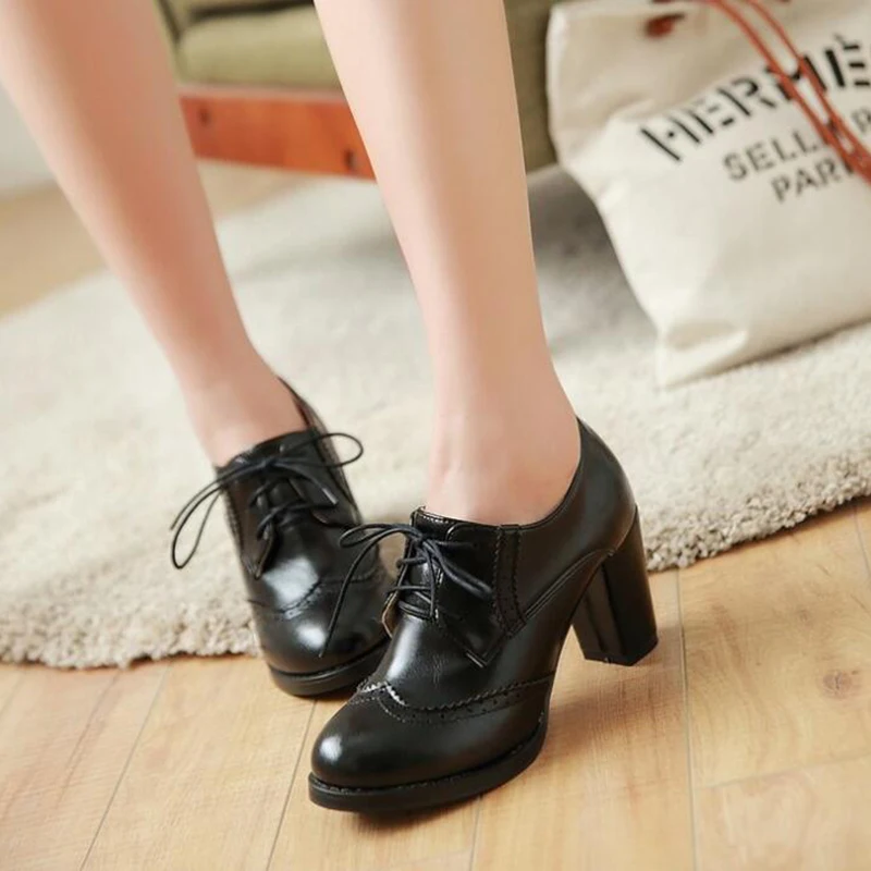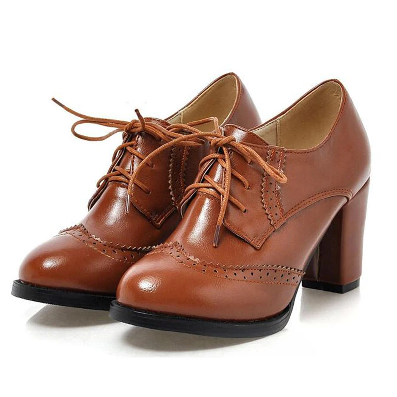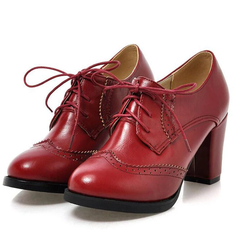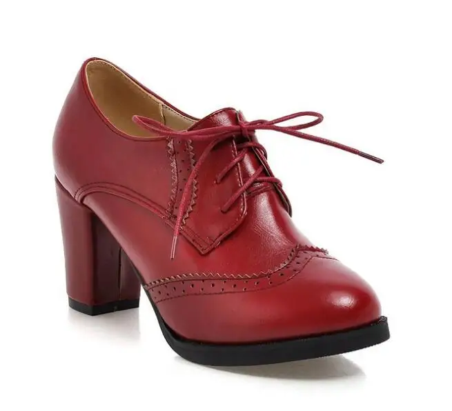 Брендовые винтажные женские туфли-лодочки Redheaven на шнуровке Туфли-оксфорды с вырезами на массивном каблуке женские ботильоны из лакированной кожи на высоком каблуке